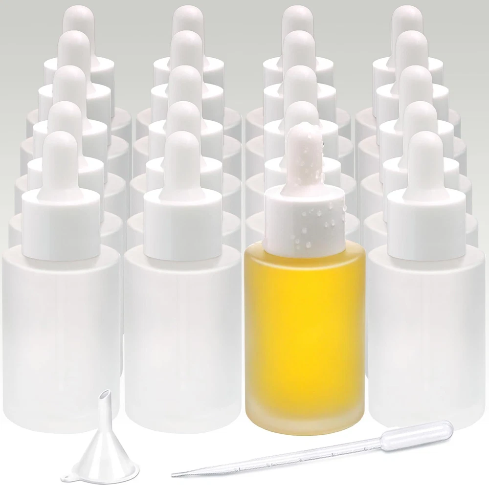 Features: Material: glass (BPA Free); Bottle color:clear (frosted) Capacity: 1 oz /30ml size:1.44″×1.44″×3.74″(3.65cm×3.65cm×9.5cm); Not Leak, Easy to use, Small volume, convenient to use and carry. Corrosion-resistant glass,high-strength raw materials,not easily damaged, it can help to keep liquid inside fresher for longer. Suitable for both dispensing your various essential oils,massage oil blends,DIY sample blend or perfume in daily use and traveling. Mini size,easy to carry and use,can easily fit in yout pocket,purse,bag etc. Package included: 20 pcs Amber Glass Bottles 20 pcs Black plastic Lids 20 pcs Glass droppers 20 pcs Rubber dropper head 20 pcsLeak-proof gasket 1 pcs Plastic pasteurized straw 1 pcs Plastic funnel 【FROSTED BOTTLES WITH GLASS DROPPERS】:Made of corrosion resistant frosted glass and are BPA, lead and paint free to safeguard your health and protect your important oils and tinctures from mixing with harmful materials. 【UPGRADED FLAT SHOULDER DESIGN】: Upgraded flat shoulder design, the shape of Flat Shoulder Glass Essential Oil Jar is more beautiful and fashionable, and different from ordinary Dropper Bottles , more unique than others. 【CONVENIENT】:High-quality glass eye dropper bottles ensure each droplet is consistent and easy to access. Take anywhere. Keep in your purse, gym bag and glove compartment. Use these for all your oils, tinctures and serums. 【PACKAGE CONTAINS】: 20 amber glass eye dropper bottles with 20 glass calibrated pipettes and caps come with leak-proof gasket + 1 bonus 2ml plastic pipettes used to fill the bottles + 1 plastic funnel. 【MULTIPLE USES】: Great for DIY essential oils, colognes, tincture, cosmetics, perfume oils, beard oil, hair oil or other liquids. The eye droppers allow for the perfect amount of product to be used every time.