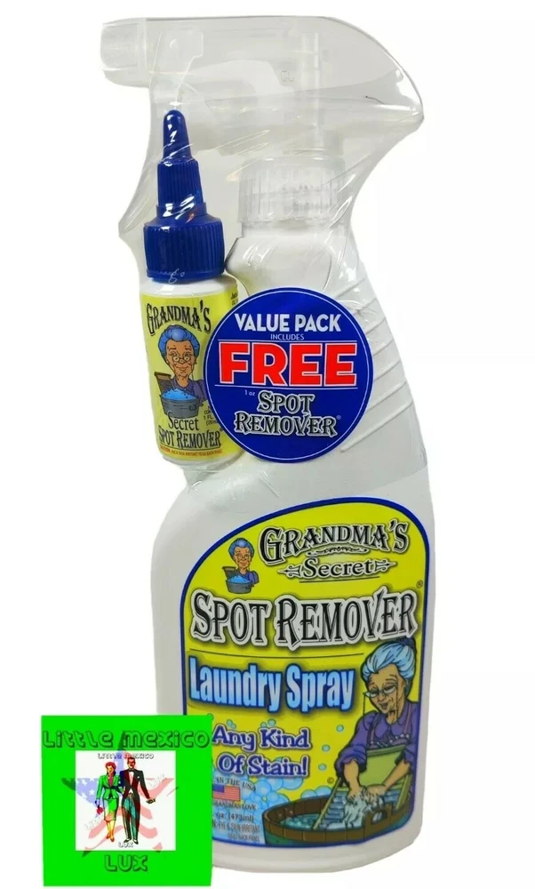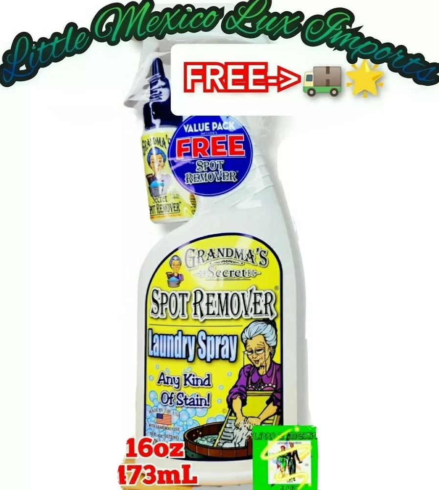 GRANDMA'S Secret ANY SPOT REMOVER Laundry Spray 16 oz + 1 oz Stain Remover! Condition is "New". Remueve cualquier tipo de manchas asi como el aceite, grasa, pintura, maquillaje, zacate, arcilla, tintas, sangre, alquitrán, café, óxido, tela sangrado y mucho más! La compra de este paquete consiste de una botella de spray de 16oz + Bonus de 1 oz. 🌟 ====================================== If you haven't tried this effective stain remover method you gotta try it ! It's gentle, yet powerful and effective against those messy stains! Why waste time and effort - when you have something that can do the work! Very simple and easy to use - 1. Spray the stain, let it soak (@5 minutes or less) and the just put it to wash with your normal regular load of clothes. Super, Simple and easy . Less stress for you and more time for you. :-) Item is ready to be shipped , as soon as payment is Confirmed.