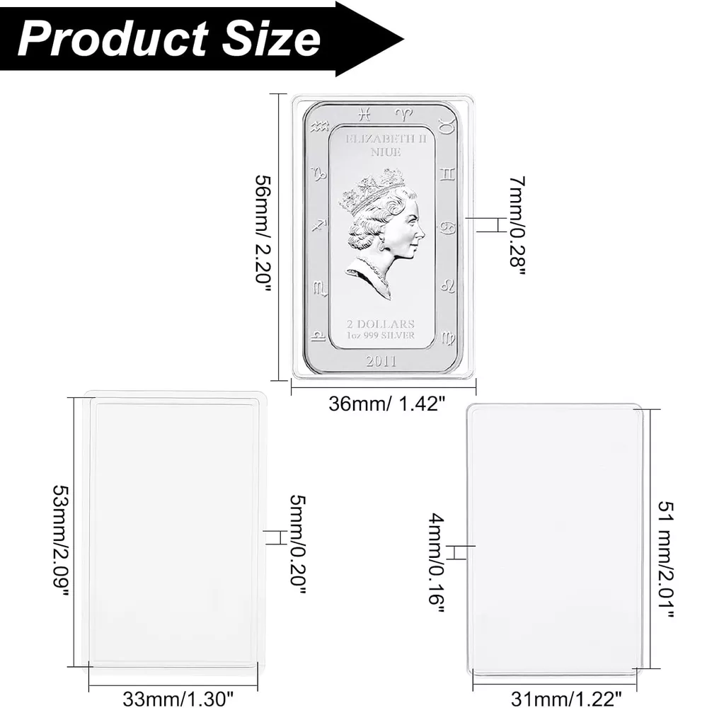 SHIP ITEMS WITHIN 1 DAY BY TRACKING NUMBER SER VICE Welcome Retail, Wholesale & Drop-Shipping! QUANTITY - 10 Protect your coins with these Archival Quality Ultra Clear Protective Boxes. For display and protect coins FIT For 1 oz silver bar Inside dimensions: 50 mm x 29 mm Delivery Details: We will ship out the item within 1 working days from Monday to Saturday. We offer USPS First Class with Free Tracking Number Service to ensure your package arrive fast and safely. We are off in weekend, The orders from weekend will ship in next Monday. If you can not accept "Weekend off", Kindly please cancel the order or message us to cancel it. Return Policy: We offer 30 days refund or exchange policy on defective or wrong items since you receive the item. If you are not satisfied with the item. please contact us for an item exchange or refund. Buyer is responsible for shipping cost incurred shipping item back. Contact Us: Any queries or issues incurred, please feel free to contact us via eBay message, we are always here ready for help. DO NOT open return request or leave negative feedback without asking for help. Highly appreciated your POSITIVE feedback & 5 star DSR. Enjoy shopping.