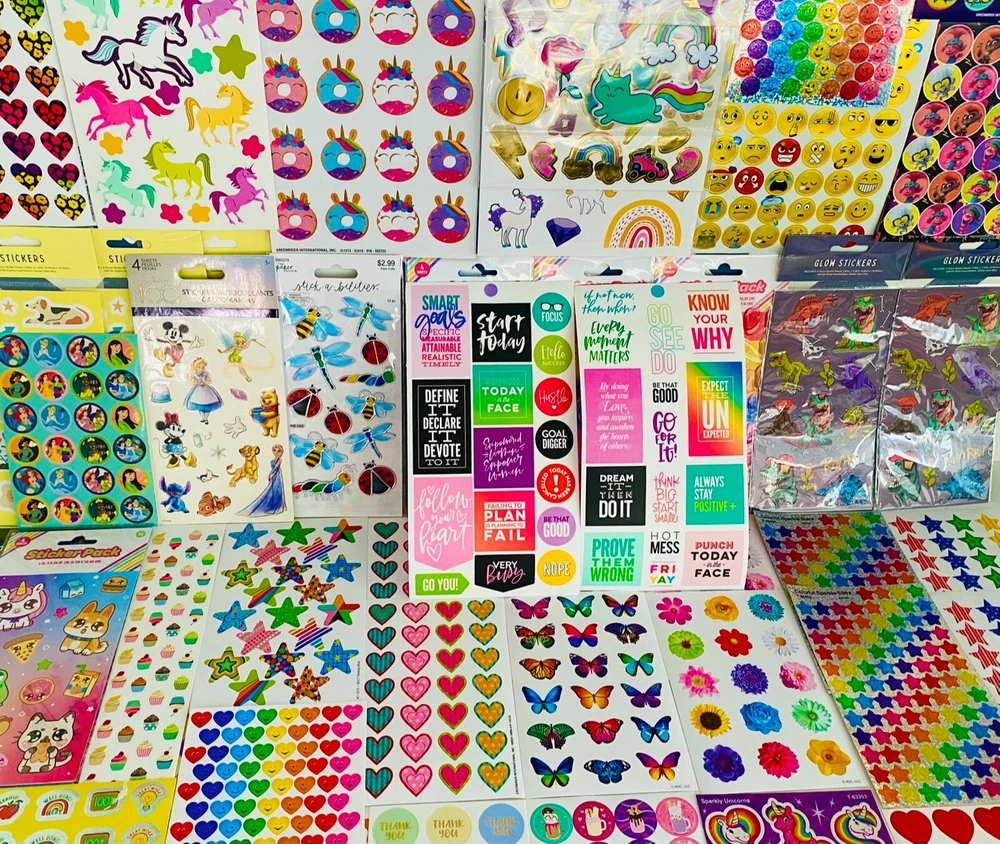 Happy Mixed Sticker Lot | The Ultimate Kit | Qty. 10 Sticker Sheets Fun Assortment of Glossy, Glitter, Metallic, Foil, Laser, Puffy, Scrapbook, Cartoons, Bubble, Pop Up Stickers For Everyone! I have included a large variety of pictures of the assortment available. The pictures give you an idea of what you will be receiving. Please Note: You will not receive everything pictured. You can choose any themes you like. Please contact me with any special requests. This HUGE Variety of fun designs stickers can be used in parties, classroom, school and home, good for reward for students, potty training, adding inside a birthday card, game activities, entertaining toddlers, etc. Perfect Gifts for Kids & all Occasions: Can be given as a gift for kids, girls, boys, toddlers, teens, students, friends, and classmates, they will love it!