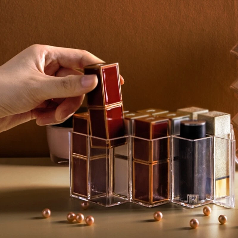 Description: Features: and high Stable structure: With stable and firm structure, this can stand, lay flat perfectly and be stacked together according to the shape of the edges. 10 spaces: For you to organize your lipsticks or other small beauty supplies. The size of will fit small to large base lipsticks. durable and acrylic material, the has a clear and body, which is easy to Clear body and special appearance make it elegant decoration for your dresser. This practical makeup with decorative look makes a great holidays, Christmas, and birthdays. Specification: Acrylic Color: As pictures shown. 1 Size: app. 2.5x2.5cm/0.98x0.98 Quantity: 1 pc Note: 1cm=10mm=0.39inch No retail package. Please allow 1-3cm error due to manual measurement. pls make sure you do not mind before you bid. Due to the difference between different monitors, the picture may not reflect the actual color of the item. Thank you! Package includes: 1 x Lipstick other accessories in the picture is not included.)