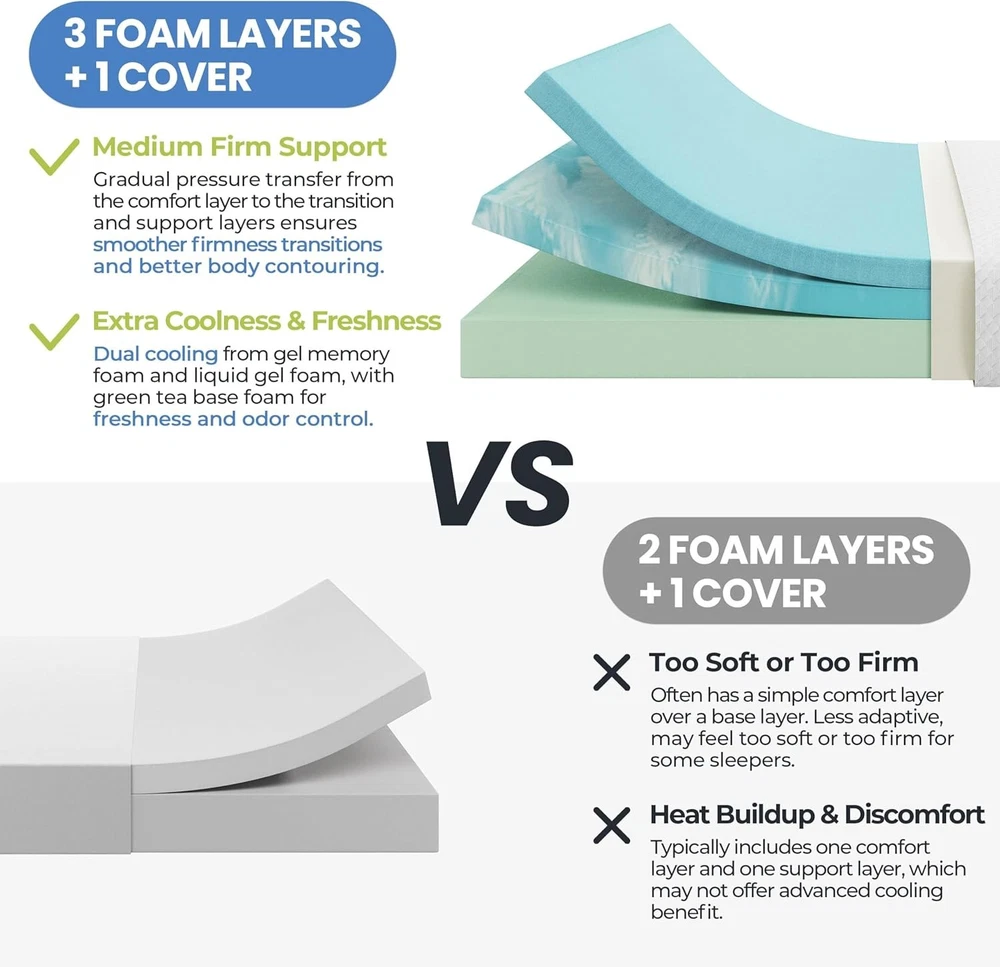 $ 51.48King 14in Hybrid Mattress Medium Firm Gel Foam Bed in Box CertiPUR-US 365 Night