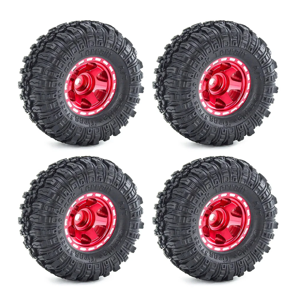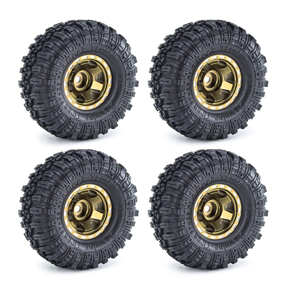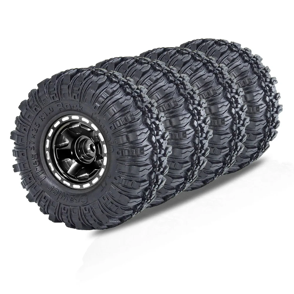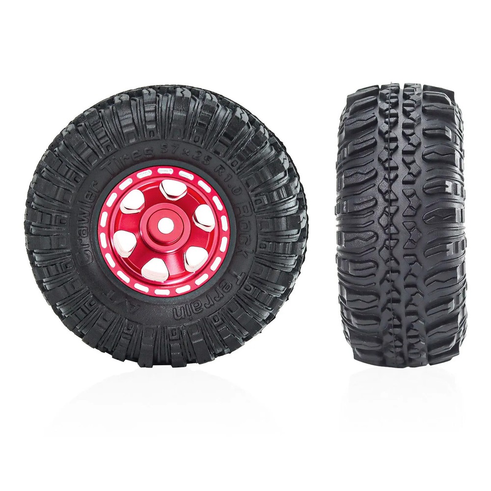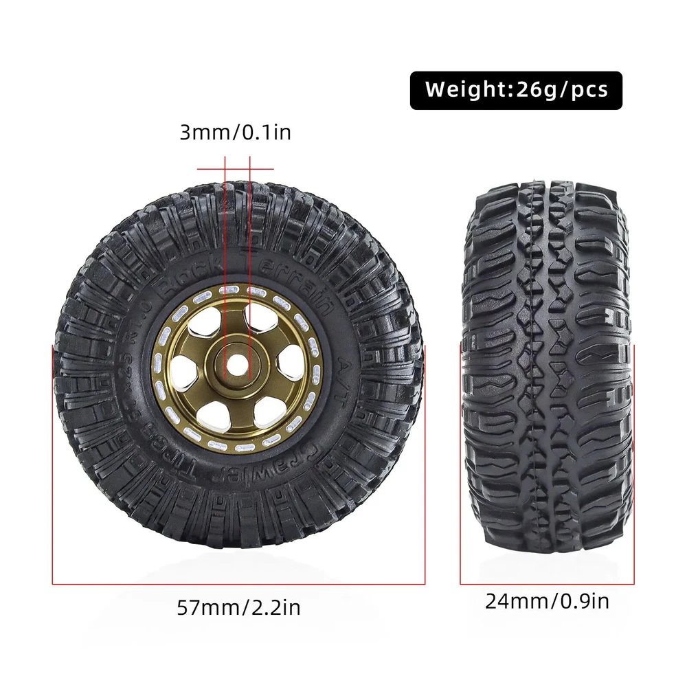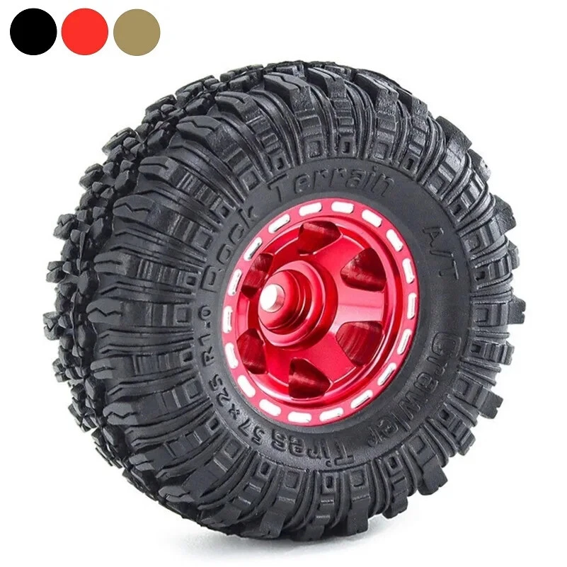 4pcs 57mm 1.0" Metal Beadlock Wheel Tire Set For 1/18 1/24 RC Crawler Car TRX4M SCX24 AX24 FCX24 Upgrade Parts Accessories Features: 100% Brand New Made of High Quality Meterial, Stronger And More Durable, Improve The Appearance Easy to use,Easy to replace Specifications: Material: Metal+Rubber Quantity: 4pcs Outer Diameter: 57mm Width: 24mm Hex: 7mm Weight: 26g/pcs Suitable for:1/18 1/24 RC Crawler Car TRX4M Axial SCX24 Note: Color deviation might exist due to different monitor settings and light, please kindly understand. Package List: 4 * 1.0" Beadlock Wheel