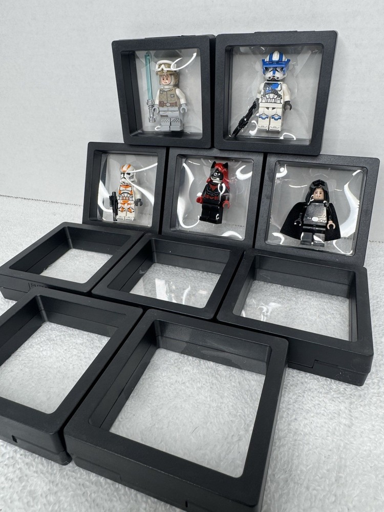 You will receive 10 of these new display cases as you see in the pictures. Please not the LEGO minifigs are not included!