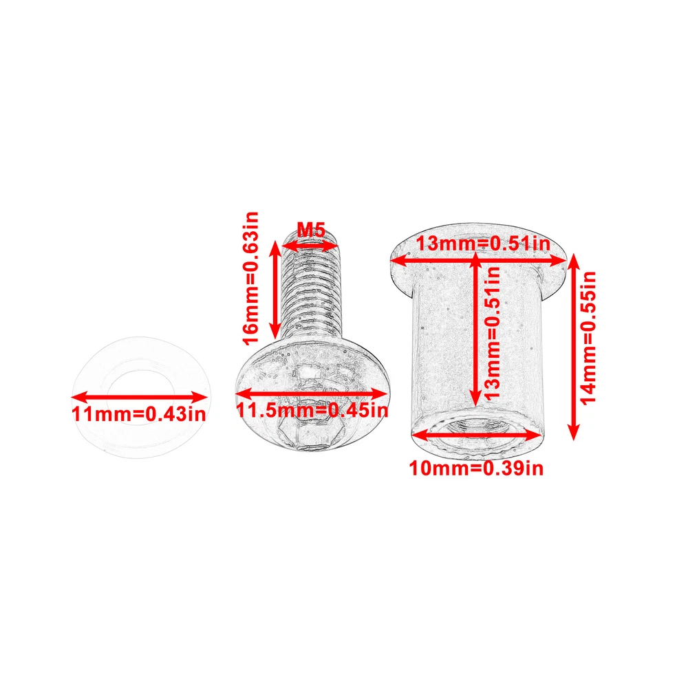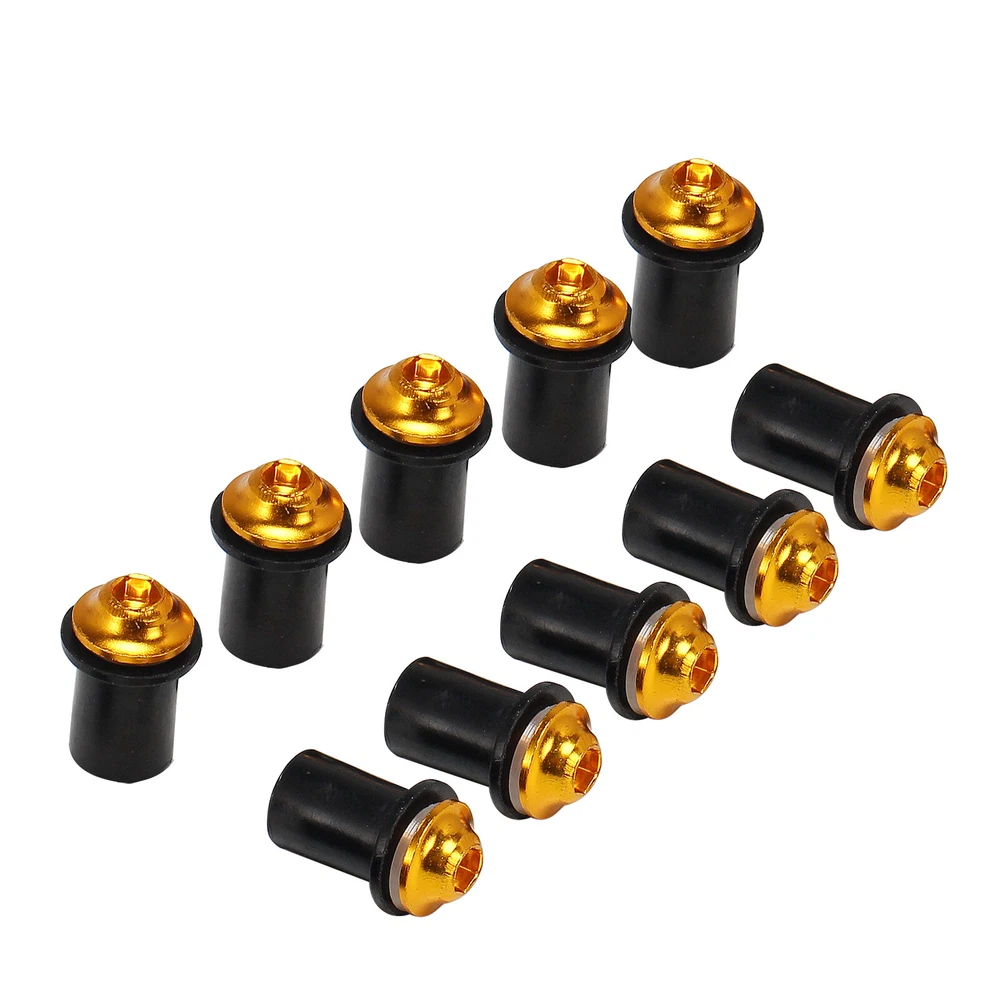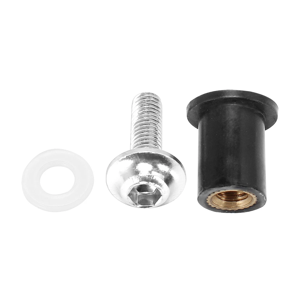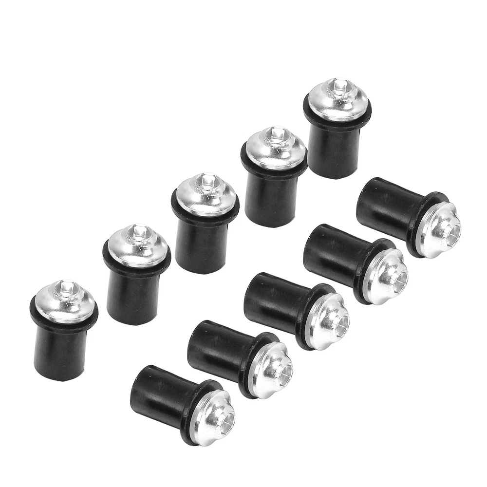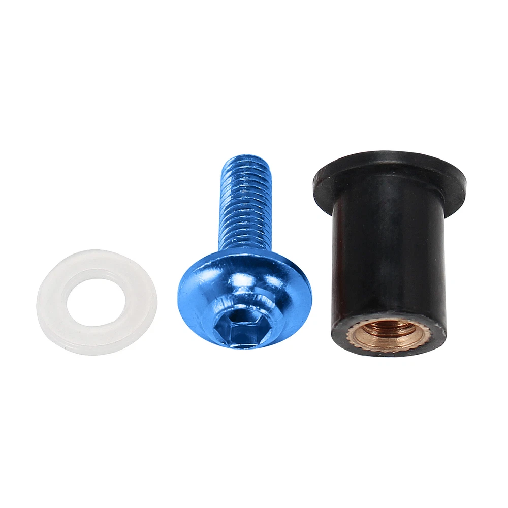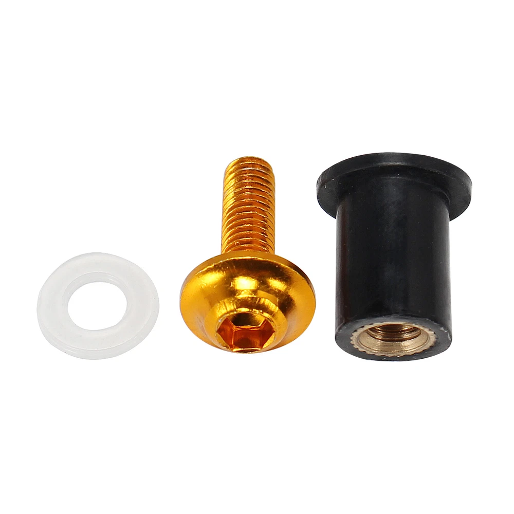 Descriptions: These M5 universal rubber well nuts fit most motorcycle windscreens, fairings or other body parts. Perfect for replacing your worn out, damaged or missing well nuts. Easy installation with the allen key included, instructions NOT included. Specifications: Condition: 100% Brand New Thread Size: M5 Type: Well Nuts Nut Material: Rubber Suface With Brass Nuts Bolt Material: Aluminum Nut Color: Black Bolt Colors: Silver, Black, Green, Gold, Orange, Blue, Gray, Red Quantity: 10 PCS Placement of vehicle: Fairings, trims, panels, fenders, windscreen, bumper and other body parts. Package Includes: 10 x well nuts 1 x Allen Key Instructions NOT included. BU NOW