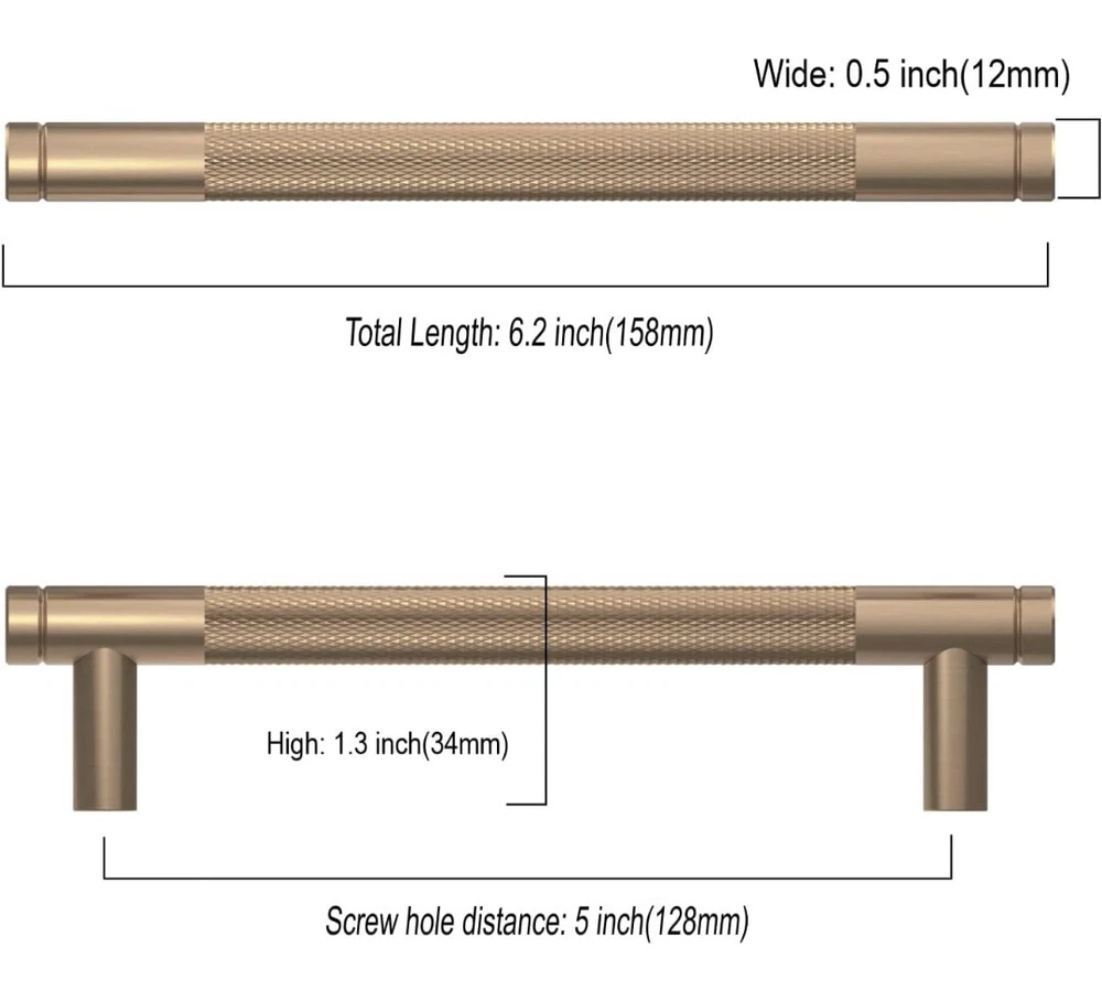 Asidrama cabinet hardware: 10 Pack 5 Inch Champagne Brown Cabinet Handles. Each handle is individually securely packaged to prevent bumps and scratches. Made of zinc alloy with a Champagne Brown finish, the Asidrama pull is a heavy duty cabinet pull that is strong. Standard screw spacing for easy installation and replacement. Measurement: Hole Centers(CC):5 inch(128MM); Overall Length: 6.2 inch(158MM); Width:0.5 inch(12MM); Projection:1.3 inch(34MM); Please check the Size of handles you require carefully before purchasing. Wide range of application: Asidrama furniture pulls are ideal for cabinets, closets, cupboards, drawers, dressers, doors and wardrobes. You can upgrade your home with your DIY