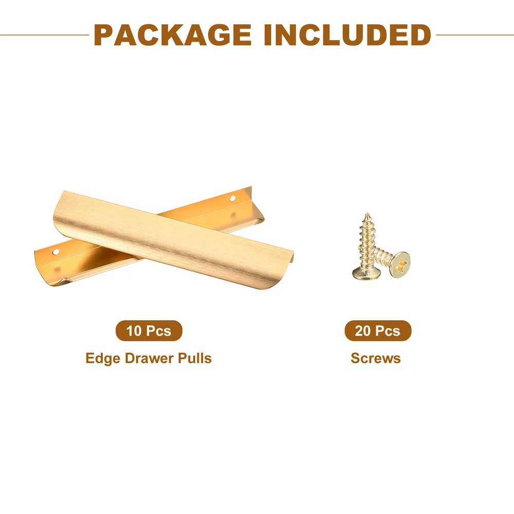 Document Advantage:Made from aluminum material, multi-layer plating, smooth surface, easy to clean, not easy to rust, not easy to fade.The curved design without sharp-edged, does not easily hurt your hand and leaves out your fingerprint.Use a screwdriver to tighten the screw into pre-drill holes and complete installation within seconds.Widely used for kitchen cabinet, bathroom closet, bedroom wardrobe and drawers.Specification:Material: aluminumColor: GoldSize: 20cm(L) x 3.9cm(W) x 1.5cm(H)/7.8inch x 1.53inch x 0.59inchPackage Included: 10Pack Edge Drawer PullsNote: Manual measurement, please allow slight errors on size. The color may exist a slight difference due to different screen displays. 10 Pack Finger Edge Pull Furniture Drawer Handles 6.3" Hole Center Gold Advantage: Made from aluminum material, multi-layer plating, smooth surface, easy to clean, not easy to rust, not easy to fade. The curved design without sharp-edged, does not easily hurt your hand and leaves out your fingerprint. Use a screwdriver to tighten the screw into pre-drill holes and complete installation within seconds. Widely used for kitchen cabinet, bathroom closet, bedroom wardrobe and drawers. Specification : Material: aluminum Color: Gold Size: 20cm(L) x 3.9cm(W) x 1.5cm(H)/7.8inch x 1.53inch x 0.59inch Package Included: 10Pack Edge Drawer Pulls Note: Manual measurement, please allow slight errors on size. The color may exist a slight difference due to different screen displays. Hot Item Payment 1.We accept eBay payment . 2.Payment must be received within 7 business days of auction closing. Shipping 1.We ship to your eBay or Paypal address. Please make sure your eBay and Paypal address is correct before you pay. 2.Items will be shipped within 1-3 business day when we received payment. 3.Delivery time depends on destination and other factors.
