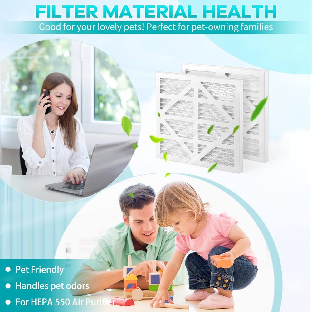 hepa 550 filter replacement hepa 550 hepa 550 air scrubber filter hepa 550 filter hepa 550 filter replacement hepa 550 filter 550 hepa filter 550 hepa 550 filter 1.Perfectly Compatible: HEPA 550 Air Filter Replacement Compatible with HEPA 550 Air-Purifier, to ensure a perfect fit and optimal functionality,Please confirm your air purifier model before ordering. 2.True hepa filtration:HEPA 550 Replacement filter are made of MERV 13 Air Filtration System , with its high quality MERV 13 material, gives you more efficient air purification, process up to 99.97% of tiny impurities, ensuring a significant improvement in air quality. 3.Easy installation: HEPA 550 air purifiers filter is very easy, You can simply remove and install the new filter without any tools and it is recommended to change the filter every 6 to 8 months to ensure air quality. 4.VALUABLe PACKAGE: Package includes 2 Pack HEPA 550 True HEPA Replacement Filter Only. Size:13.7×14.8×0.8 in 5.After-sales service: If you have any questions, you can contact us at any time, we will provide you with satisfactory service!