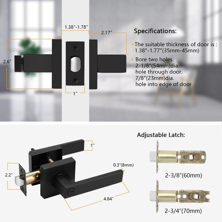 Menu 1. We require immediate payment. 2. We currently accept payment via eBay managed payments only. 3. Once payment is cleared, we will dispatch your shipment within 1-3 business days. Please refer to the "Shipping" tab for more information regarding shipping speed to your destination. 10 Pack| Matte Black Door Handles Privacy Door Levers, Heavy Duty Bed and Bath Door Locks Interior Keyless Locksets, Reversible Flat Levers with Square Rosette Product description Material:Heavy Duty Zinc Alloy and Metal; Matte Black Finish; Modern Square Privacy Lever 【Privacy】:10 Locks Per Package(for 10 doors). Privacy door lever with elegant matte black finish. Confirm with ANSI Grade 3, Exceeds 200,000 cycles 【Function】: Key-less Privacy Function. When locked inside, the lock could be opened outside with coin. Best use for bathroom or bedroom door 【Steel Adjustable Latch】: It has adjustable universal latch - 2-3/8" or 2-3/4", Fits doors 1-1/4 inch to 1-3/4 inch 【Easy Installation 】: Easy to install with all accessories included. The easy installation makes for a one-person project. It fits both right and left handled doors 【Dimensions】 : Lever Length: 4.84"(123mm) , Rosette Diameter: 2.56"(65mm). Note : The square plate of the latch is non-removable PLEASE MESSAGE US IF YOU HAVE ANY OTHER QUESTIONS, AND MANY THANKS FOR READING ALL OF THIS. Copyright ©#. All Rights Reserved.