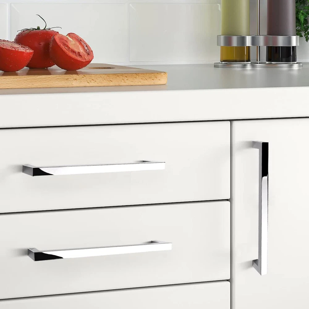 High Quality Polished Chrome Kitchen Cabinet Handles Hardware The cabinet pull is ideal for different styles of cabinets, dressers, drawers, cupboard and other furniture decorated. Apply to the kitchen, bedroom, bathroom, office and other rooms. It can make your home and furniture more elegant and modern. Product Info: * Finished: Polished Chrome * Material: Solid Zinc Alloy * Type: Square Bar Cabinet Handles * Hole Center: 6-1/4"(160mm) * Overall Length: 6-3/5"(168mm) * Height: 1"(28mm) * Width: 0.35"(9mm) Package Included: - Cabinet Pulls - Mounting Screws(M4*25mm & M4*45mm) Product Features: ·Smooth surface makes you feel comfortable to grip. ·Polished chrome finish looks charming, elegant and fashionable. ·Solid construction of superior material, sturdy and durable. ·Mutiple sizes of cabinet handles can meet your need (4 sizes in total). ·Each pull comes individually wrapped and bagged to avoid the scratch. ·Easy and quick installation, just one-person project. ·or replacement for any quality problem. Product Dimensions - Overall Length: 6-3/5inch(168mm); Hole Center: 6-1/4inch(160mm); Height: 1inch(28mm); Width: 9mm. Please choose the right size according to the hole center. Premium quality & Beautiful finish - The material of the cabinet handle is high quality solid zinc alloy, sturdy and durable. Gorgeous polished chrome finish can make your furniture and rooms more elegant and modern. Widely Use - The contemporary cabinet pull is suitable for different styles of furniture and rooms. It creates an excllent upgrade to your cabinets, drawers, cupboard, wardrobe, etc. Carefully Packaged - Each pull is individually wrapped and bagged to avoid the scratch and protect the beautiful finish. Three sizes of screws for each handle(8-32*25mm & 8-32*35mm & 8-32*40mm). Reliable Service - We will answer your questions about our products patiently. If you are not satisfied with the quality of the item, please message us. or REPLACEMENT for any quality problem.