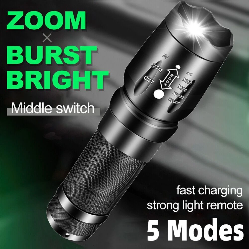 10 Pack Super Bright LED Flashlight Zoomable Working Light LED Torch Zoom AAA Description: 1. [SUPER BRIGHT WITH 5 MODES] The small flashlight LED uses advanced LED beads, it can easily light up an entire room! Adjustable/zoomable focus with 5 modes: High- Medium- Low- Strobe- SOS (for Emergency). 2. [WATERPROOF] LED mini small flashlight torch can be used in any weather. The aluminum alloy body has no rust issue. 3. [PREMIUM QUALITY & LONG-LASTING] Our LED flashlight is made of high quality aluminum alloy, this super bright LED Flashlight is solid and sturdy, the edge designed is sharp and strong, can easily break the windows. 4. [MULTIFUNCTIONAL USES] Anti-abrasive, skid proof, compact design makes it the top pocket small LED flashlight for tactical situations, outdoor activities, camping, hiking, hunting, fishing, home use, military and as a powerful emergency light. Taclight is small enough to fit in your pocket, handbag, or car compartment, so you can take it with you wherever, whenever. 5. [Power Source] The LED flashlights working torch is powered by rechargeable battery 3.7v battery(18*65*O/26650 not included ) or 3X AAA battery(not included). Specification: Product Name: Super Bright LED flashlight Bulb: Super Bright LED Material: Aluminum Alloy Power Source : 1 * 26650/1*18*65*O/3 * AAA (All batteries are not included) Color: black Function: High/Medium/Low/Strobe/SOS Package includes: (without battery) 10x Super Bright LED Flashlight Small 10x Battery Tube 10x AAA Battery Holder On Jan 11, 2025 at 15:02:06 PST, seller added the following information: