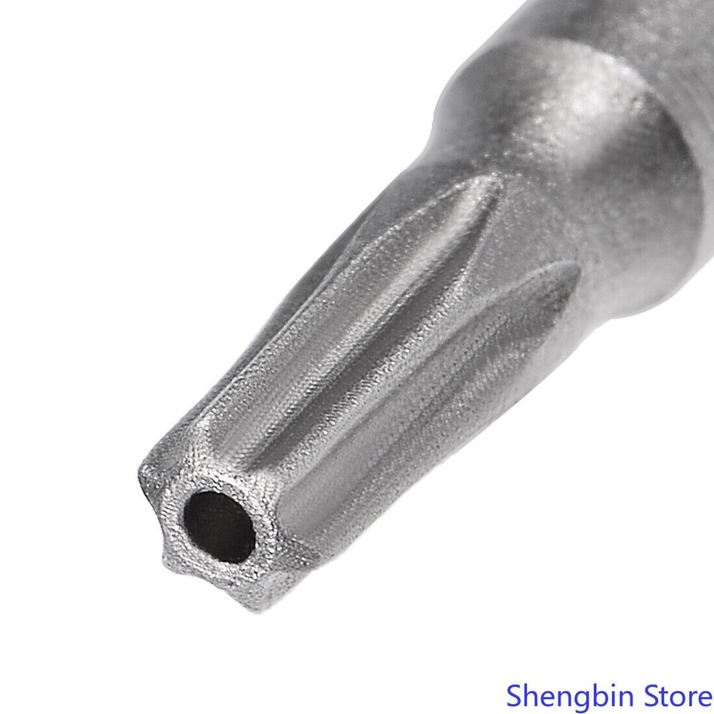 10 Pcs 1/4" Hex Shank T10 Magnetic Security Torx Screwdriver Bits 100mm Length * ,can suck the screws easily when used it. * Exquisite workmanship, each can be accurately locked screws, no to the screw, and the screwdriver head. * Great replacement for missing, bent or broken torx head screwdriver bits. * The hole in the center in each bit causes it to be tamper resistance, designed to prevent Cam-Out the hex bits clicks onto most standard sockets, screwdrivers, drill/driver kits & Power tools attachments. * Made of S2 alloy steel, which is a commonly used material in hardware with high hardness. * Those bits fit for electric screwdrivers, hand screwdrivers, electric drills, air drills and so forth. Specifications: Shank Size: (Hex) 1/4-inch Bit Type: T10 Total Length: 100mm / 3.94-inch Surface Treatment: Sandblasting Material: S2 Package Content: 10 x Torx Screwdriver Bits