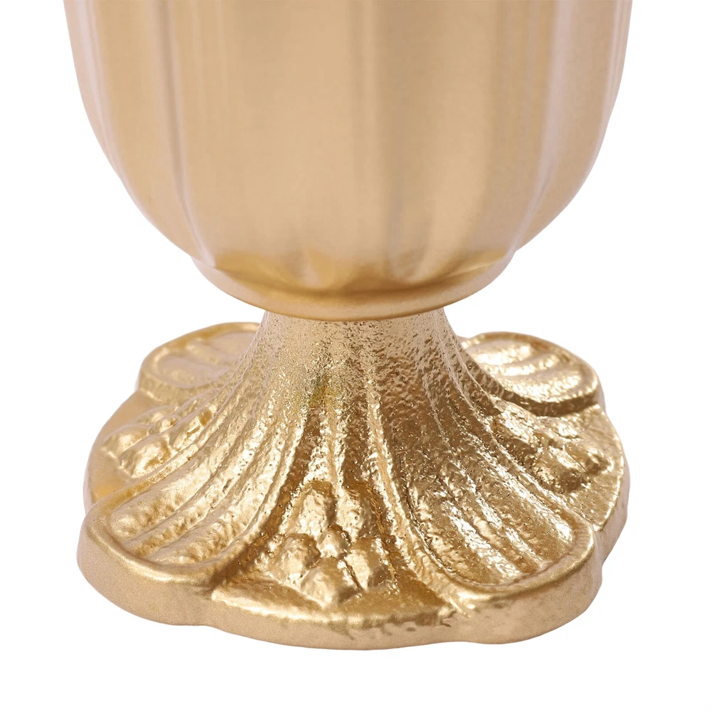 Specifications Material: Iron Surface Treatment: Welding, Painting Base Treatment: Cast Iron Color: Gold Style: European, Retro Mounting Type: Free-standing Number of Vases: 10 Vase Weight: 0.45kg/0.99lbs (Each ) Net Weight: 4.5kg/9.9lbs Gross Weight: 5kg/11.02lbs Base Diameter: 8.6cm/3.4inch (Each ) Top Diameter: 12cm/4.7inch (Each ) Overall Height: 14cm/5.5inch (Each ) Package Size: 54*23*15cm/21.26*9.05*5.9inch Package Included 10* 5.5"H Wedding Flower Vases 10 Pcs Metal Golden Trumpet Vase Elegant Wedding Centerpieces Vases Party Decor Description Decorating the Wedding Site with Fresh or Artificial Flowers to Create a Romantic Atmosphere Is Essential to an Ideal Wedding. Our Wedding Flower Vases, Which Have High-quality Cast Iron Bases, Exquisite Workmanship, Elegant Blooming-flower Design, and High Practicality, Can Spice up Your Wedding Decor with Various Flowers. It Is Also Suitable for Celebrations, Party Scenes, Birthdays, Aisle Road Leads, Event Decorations, Etc. Key Features Solid and Durable: Our Flower Vases, Adopting High-quality Iron with Cast Iron Bases, Have Solid Construction and Are Durable. You Can Use Them Repeatedly. Exquisite Workmanship: This Product Adopts Fine Welding and Exquisite Painting Treatment Processes, Which Is Made by Semi-manual and Semi-mechanical, Making It High-quality and Delicate. An Eye-catching Backdrop: with the Sunlight or Lamplight Shining on the Gold Vase, It Can Add a Sparkling Glow to Dull Wedding Décor, and Impress Your Guests with the Eye-catching Backdrop. Various Decoration Methods: You Can Put Fresh Flowers, Artificial Flowers, Wax, or Flameless Pillar Candles on the Top Floral-shaped Plate As a Flower Centerpiece or a Candle Holder for Tables, Especially for Weddings, to Create a Romantic Atmosphere. Delicate Gift: Because of Its High Quality, Exquisite Treatment, Elegant Blooming Flower Design, and High Practicality, the Flower Vase Is a Fantastic Gift for Housewarming, Weddings, and Other Festivals. Elegant Appearance: the Beautiful and Elegant Blooming Flower Design, with Smooth and Fine Welding, Embodies the Beauty of Symmetry, and Makes the Table Decoration More Attractive and Unique. Ready to Use : These Flower Vases Are Well-manufactured and Packed When You Receive Them, so You Can Use Them for Decoration Directly. Easy to Clean: Due to Iron Crafts and a Painting Treatment, You Can Use a Soft Cloth to Clean and Dry, Which Is Simple and Labor-saving. Details Stable Stand Base: Each Flower Vase Is Designed with a Square and Flower-shaped Base, Together with Cast Iron Material, Preventing It from Collapsing and Making the Whole Flower Vase More Stable. Large Opening: the Top Diameter of the Blooming-flower-shaped Holder Is 12cm/4.7inch, Which Is Capable of Placing Large Candles, Fresh Flowers, and Artificial Flowers. Clear Texture: This Flower Vase Is Clear-textured with an Elegant Arc, Round Edge, and Smooth Outlines, Which Appear Simple and Fashionable. Application The Wedding Flower Vase Is Ideal for Weddings, Celebrations, Party Scenes, Birthdays, Aisle Road Lead, and Event Decorations. It Is Also Suitable for Home Décors, Living Rooms, Dining Rooms, Parlors, Coffee Shops, Bars, Hotels, Etc. Specifications Material: Iron Surface Treatment: Welding, Painting Base Treatment: Cast Iron Color: Gold Style: European, Retro Mounting Type: Free-standing Number of Vases: 10 Vase Weight: 0.45kg/0.99lbs (Each ) Net Weight: 4.5kg/9.9lbs Gross Weight: 5kg/11.02lbs Base Diameter: 8.6cm/3.4inch (Each ) Top Diameter: 12cm/4.7inch (Each ) Overall Height: 14cm/5.5inch (Each ) Package Size: 54*23*15cm/21.26*9.05*5.9inch Package Included 10* 5.5"H Gold Wedding Flower Vases Notes Please Note That Candles and Flowers Are Not Included. Please Allow the Slight Color Difference Caused by the Shooting Light and 1-3cm Error Due to Manual Measurement, and Make Sure You Do Not Mind Before You Order. Payment Delivery details Terms of sales About us Contact us Payment We accept ebay payment 。 Fees such as import duties, taxes are not included in the item price or shipping costs. These charges are the buyer's responsibility. Delivery details Shipping: 2-9 working days to: USA Terms of sales We maintain high standards of excellence and strive for hundred percent customer satisfaction. Feedback is very important to us. We hope that you contact us immediately before you give neutral or negative feedback, so that we can address your concerns. It is impossible to address issues if we do not know about them! About us Your satis faction is our ultimate goal. We work hard to earn your trust and future business. Our certified technicians have tested each item before shipping. The unit comes with 1 year limited warranty on all manufacturing defects. a) If you receive a defective item, you may return it or ask for a discount. Please contact us within 14 days after you receive the package. b) What you returned must be intact and in its original packaging as re? u. Customer is responsible for shipping costs of the returned item. c) We will cover the cost of shipping back t with the shipping rate indicated in the registration page. We will send you a new unit or refund the full payment you paid. Thank you. Contact us Business Hour Business Hour: Monday To Friday: 8:30 AM to 5:00 PM (Beijing China time) Due to time zones, our reply to your questions may not be immediately. But within above working time, we will reply your email within 24 hours. If it's non-workdays, please kindly be patient and wait till Monday. Please contact us with ebay message. Please feel free to contact us if you have any questions. Monday To Friday: 8:30 AM to 5:00 PM (Beijing China time) Due to time zones, our reply to your questions may not be immediately. But within above working time, we will reply your email within 24 hours. If it's non-workdays, please kindly be patient and wait till Monday. Please contact us with ebay message. Please feel free to contact us if you have any questions. O
