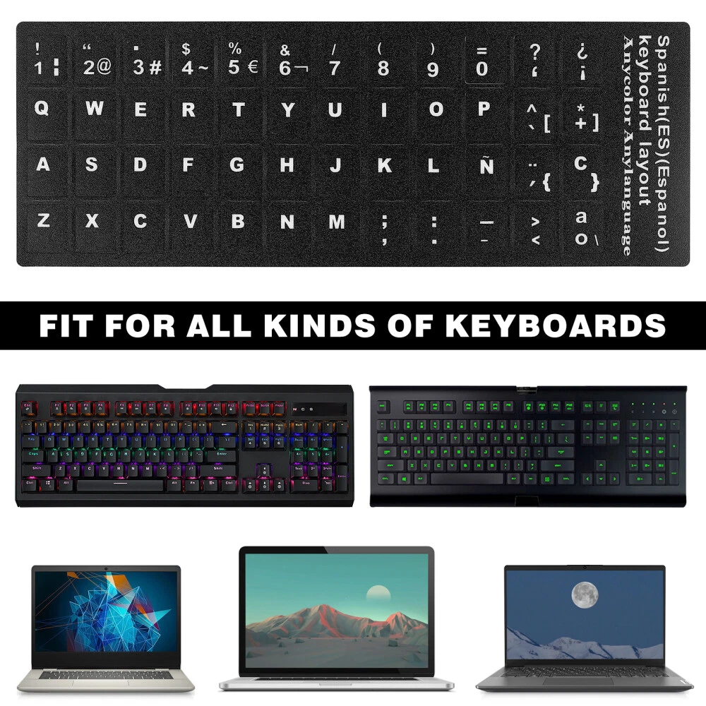 Related Hot Sale Cashmere Beret Hat Pearl Beret Basque Beret Pearl Autumn Winter Cashmere Beret US $10.27 12-36V Marine Circuit Breaker Waterproof Panel Mount Reset Fuse Holder 60A US $13.39 Fret Rocker Guitar Part Replacement Tremolo Arm with Tone Change US $9.87 Christmas Desk Decor Fish Decorations for Tank Table Top Ornaments US $10.18 15pcsclip microphone Microphone Stand Microphone Clip Cable Clips Holder US $10.78 6 pcs Salon Barber Combs Styling Combs Hair Cutting Combs With Scale US $18.56 | Baby | | Books & Magazines | | Business & Industrial | | Cameras & Photo | | Clothing, Shoes & Accessories | | Collectibles | | Computers/Tablets & Networking | | Crafts | | Home & Garden | | Jewelry & Watches | | Cell Phones & Accessories | | Consumer Electronics | | Sporting Goods | | Toys & Hobbies | | Video Games & Consoles | | Health & Beauty | Product Description Collecting listings has surprises Description . This computer keyboard letter sticker is made of premium material, the Spanish letters on it are clear and beautiful, can give you good reminding when you are typing the Spanish words. The lettering on it will not easily fade, universal for most types of keyboards Features - Color: Black. - Material: PVC. - Size: 18.00X6.50X0.50cm/7.07X2.55X0.20in. - The clear and beautiful Spanish letters on the stickers will help you to type Spanish easily. - Keyboard stickers can update the worn out letter keys of your keyboard and make it easy to type. - Fits the keyboard perfectly for a better touch and good typing experience. - Keyboard stickers are specially designed for desktop keyboards, laptop and notebook keyboards, computer keyboards and more. - Easy to apply and remove, the stickers can be pasted on the keyboard easily. Computer Keyboard Stickers Package includes 10 Sheets x Keyboard Stickers Contact US 1.If you have some inquires or problems, Please feel free to contact us. 2.We will reply your email within 1 business day (except weekend). 3.When delivery is delayed or items are damaged during delivery, please email us first before you leave feedback. Thank you. People Who Viewed This Item Also Viewed peace doves ornament Pigeon Statues Artificial Bird Pigeon Model Toy US $8.99 Folding Pour Over Coffee Dripper Brewing Coffee Dripper Filter Coffee Dripper US $9.88 304 Stainless Steel Colander Spider Food Strainer Mesh Pasta Basket US $9.96 Battery Operated LED Indicator Doorbell Door Bell Office Home Dorm Security US $11.78 10 PCS Bee Moving Tool Queen Grafting Needle Beekeeping Tools US $9.79 Accessory for Flag Pole Ball Gold Decor Hardware Replacement US $13.15 Artificial Sandwich Food Kitchen Prop Fake Bread Simulated Hamburger Model US $9.68 Lights for Room Decor on Air Sign LED Home Vintage Barbecue US $22.18 3 Pcs Headphone Cable Clip Microphone Clips Clamps for Headset US $7.17 Vehicle Phone Holder Universal Phone Cradle Holder for Phone Vehicle Car US $12.02 24 Pcs Decorative Storage Bowknot Gift Boxes with Lids Kraft Cardboard Tie US $14.68 20pcs Handlebar Caps Mtb Bar End Plugs Handlebar Plug US $10.62 Frying Spatula Silicone Turner Cooking Tool Nonstick Spatulas US $10.59 2Pcs Drawstring Sack Hiking Sleep Bag Sack Large Drawstring Bag Camping Storage US $8.48 10 Pcs Window Blind Clips Blind Valance Clips Horizontal Blind Clip US $8.78 2 Sets Orchid Pot Resin Flower Pots for Indoor Plants US $24.26 24 Pcs Replacement Wand for Blinds Hooks Tips Venetian Handle Caps Curtain Rod US $7.75 Fishing Gill Net Freshwater Fishing Trap Fishing Gill Net With Floats US $11.73 Corsage Corsages for Prom Wrist Flower Hand Flowers Pearl Bride Bridesmaid US $9.20 Plastic Pallet Dog Kennel Rabbit Cage Manure Tray Indoor Cat US $12.98 2pcs Eye Charts Wall Eye Testing Chart Wall Eye Test Chart US $10.15 Secret Stash Container Diversion Bolt Jewelry Safe Storage Hider Outdoor Boxes US $10.85 10 Pcs Double Sided Tape Scrapbooking for Paper Student Office US $9.88 Rhinestone Choker Necklace Pearl Crystal Rhinestones Necklaces US $9.49 On Dec 15, 2024 at 01:41:26 PST, seller added the following information: