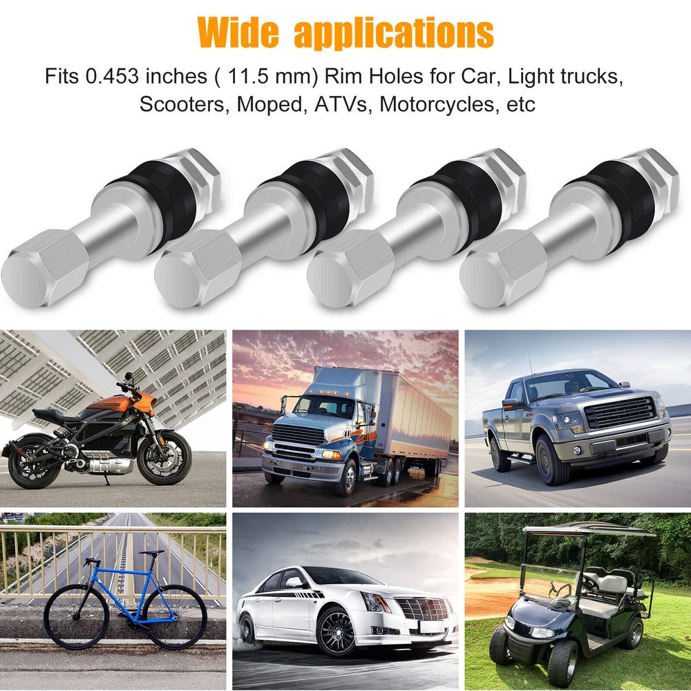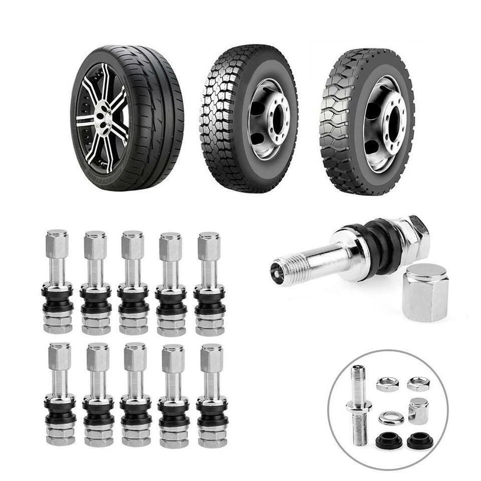 Product Feature ✨ Complete Valve Stem Set: Set of 10 valve stems with caps, providing you with all the essentials for your wheels. ✨ High-Quality and Reliable: Made of high-quality material, these valve stems offer stable characteristics and high reliability, ensuring they can withstand various road conditions. ✨ Optimal Length: Each valve stem measures 1 inch long from the wheel surface to the tip, providing a suitable fit for a wide range of vehicles. ✨ Secure O-Ring Seal: The caps come with an O-ring seal inside, ensuring a secure and tight fit, protecting your tires from dust and debris. ✨ Easy Installation: These valve stems are easy to install, offering an excellent enhancement to your aftermarket or original wheels. Maintain your wheels' performance and appearance with these reliable valve stems. ✨ Versatile Fit: These valve stems fit 0.453 inches (11.5 mm) rim holes, making them suitable for a wide range of vehicles, including cars, light trucks, scooters, mopeds, ATVs, motorcycles, and more. Product Specification Type Wheel Tire Valve Material Zinc alloy + Rubber Color Silver Quantity 10pcs Length 1 inch Long (From Wheel Surface to Tip) Fit for 0.453 inches ( 11.5 mm) Rim Holes Application For Car, Light trucks, Scooters, Moped, ATVs, Motorcycles, etc Package Included 🎁 10 x Tire Valve Stems On Feb 20, 2025 at 05:11:16 PST, seller added the following information: