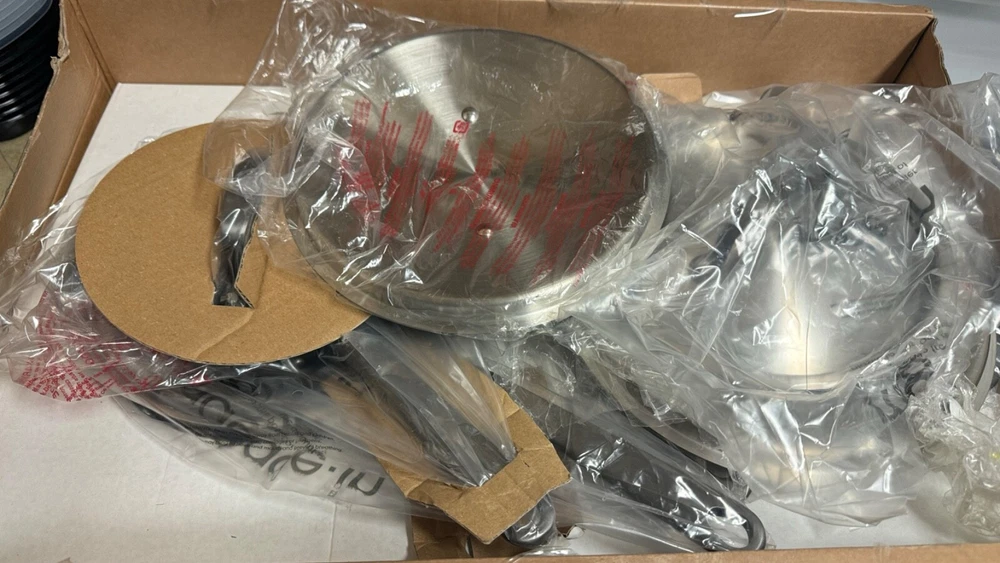 brand new never used box was damaged pans still in plastic cover retails for 800.00 dollars leaving at this price since item box is damaged.