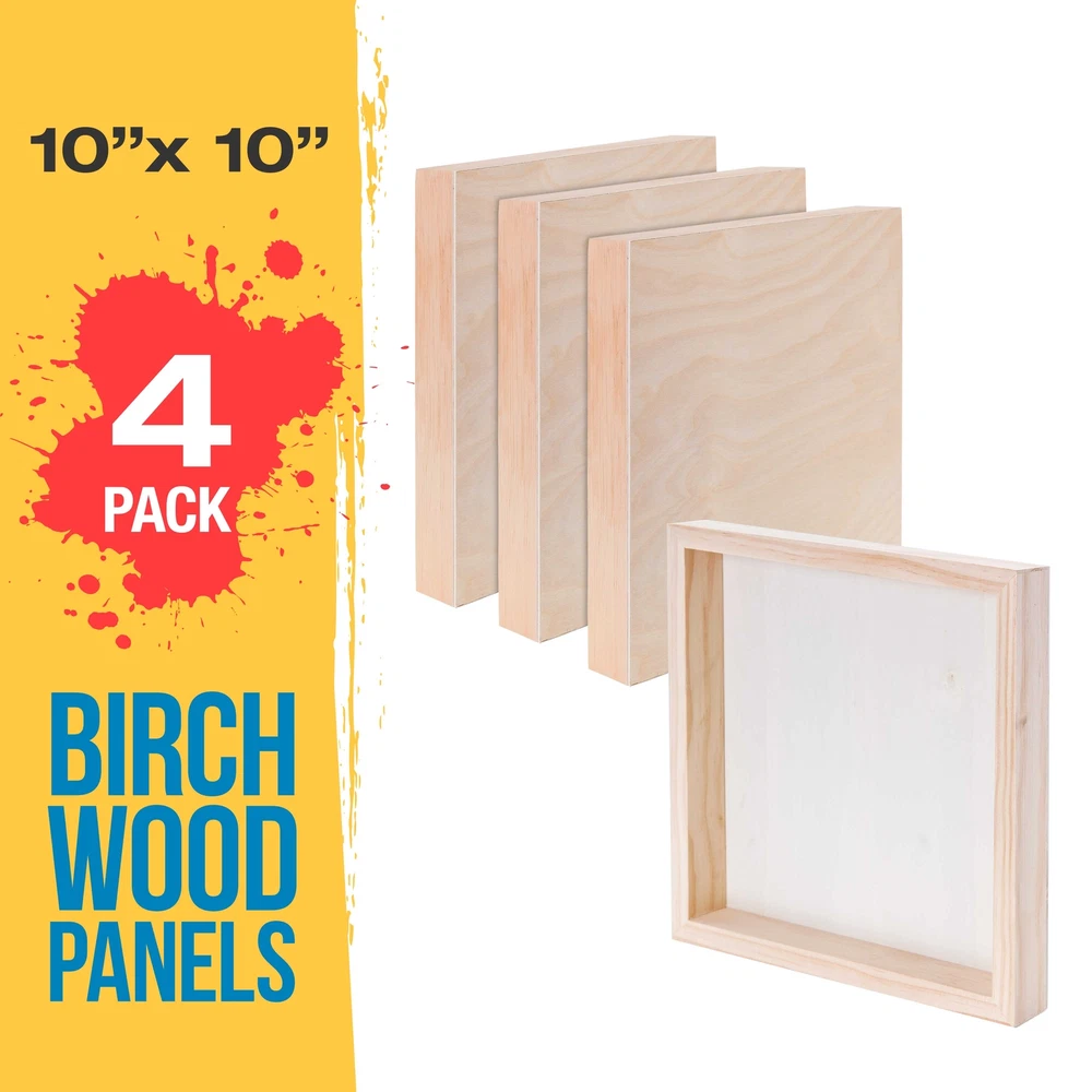 ]]> U.S. Art Supply Ebay Storefront Ordering | Shipping | Returns | International Product Information Part# USA WCG10X10-4PK Unfinished Cradled Wood Panels for Painting, 4 Pack of 10x10 inch - Gallery Birch Wooden Canvas Boards 1-1/2" Deep - Mixed-Media Craft, Acrylic, Oil, Encaustic, Paint Pouring 1-1/2" Gallery Depth Canvas Wood Art Panels: 4 Pack of premium artist quality 10" x 10" x 1-1/2" deep gallery depth cradled wood paint pouring panel boards. Premium sturdy unprimed smooth birch surface panels that are ready for primer or gesso. Alternative to Canvas: Provides a firm smooth painting surface that will not stretch, flex or bend like traditional canvases. Unfinished panels have smooth sanded birch faces with solid wood cradles that ensure strength, so there will be no warping. Easy to hang, as no frames are necessary. Ideal for Mixed-Media: 10x10 Wood Canvas boards for painting. Wooden Panels are excellent for paint pouring and most art and craft projects, as they can be used with all types of mixed-media including oil, acrylic, watercolor, tempera, encaustic, collage, decoupage, impasto, photos, drawing etc... Available in Multiple Wood Panel Size and Depths: Our cradled wood panels are available in multiple sizes from 4" x 4" up to 24" x 36" and with cradle depths of either 1-1/2" Gallery Panels or 3/4" Studio Panels. Quantity of panels per package also vary from 2 to 5. Our wood panel boards are used by professional artists, as well as the young aspiring artist for creating unique artwork. U.S. Art Supply is a national industry leader in Art Supplies. Buy with Confidence: Backed by a trusted brand dedicated to your satisfaction, we ensure a hassle-free experience every time. U.S. Art Supply 10x10 square wood panels are great for painting and other crafts. Discover the perfect foundation for your artistic creations with our premium artist birch wood panels for painting. These wood canvas boards for painting offer an ideal surface for artists seeking durability and a smooth texture. These wooden canvases for painting are great for other crafts. Our wooden canvas provides exceptional support, ensuring your paintings stay vibrant for years. Choose from a variety of wood painting panels that combine the natural beauty of wood with a finely sanded finish, perfect for both oil and acrylic paints. Whether you're working on a small project or a large masterpiece, our wooden canvases for painting deliver a reliable and versatile medium.