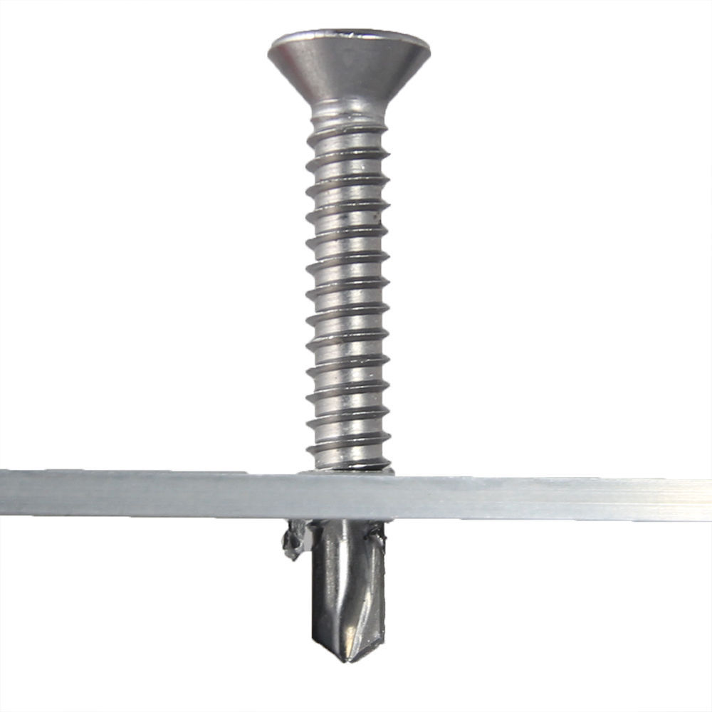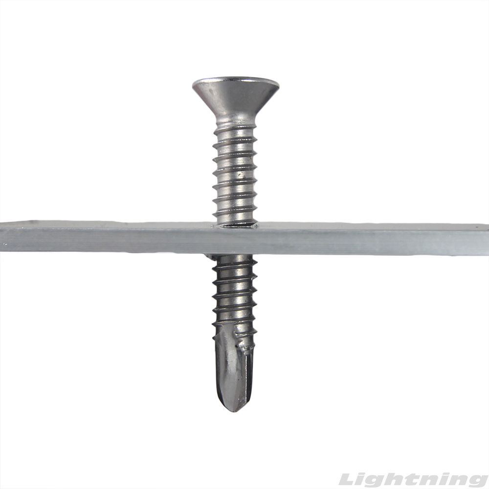 #10 x 2-1/2" Self Drilling Screws Flat Head Sheet Metal Stainless Steel Qty 250 Self-Drilling Screws, also known as Tek screws, eliminate the need for a pre-drilled hole. The length of the drill point determines the material thickness which the screw can reliably penetrate. When selecting a self-drilling screw design, it is important to consider the material thickness and type of materials to be joined. These sheet metal screws are highly versatile and are used to attached metal, wood, fiberglass and plastic. The sharp threads draw material together and ensure a secure hold. General Product Information Head Style : Flat Drive Style : Phillips Drive Size : #2 Thread : #10 Overall Length : 2-1/2" Quantity of Fasteners in Package : 250 Detailed Product Information: Head Diameter : 0.362" Head Height : 0.116" Countersink Angel : 82 Degree Thread Diameter : 0.190" Thread Coverage : Full Thread Thread Length : 2.384 Point Style : Self-Drilling Shipping: All orders placed before 3:30 pm EST Will Ship Same Day Tracking is provided on ALL Orders Priority Mail Shipping service is offered at a discount of only $3.95 UPS Ground UPS Next Day Air is available, Please inquire for pricing Returns : ALL returns are accepted if returned within 60 days. Money Back or exchange guaranteed. NO Restocking Fees. For YOU, we constantly strive to find ways of improving our performance.