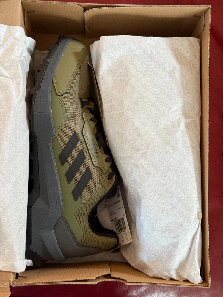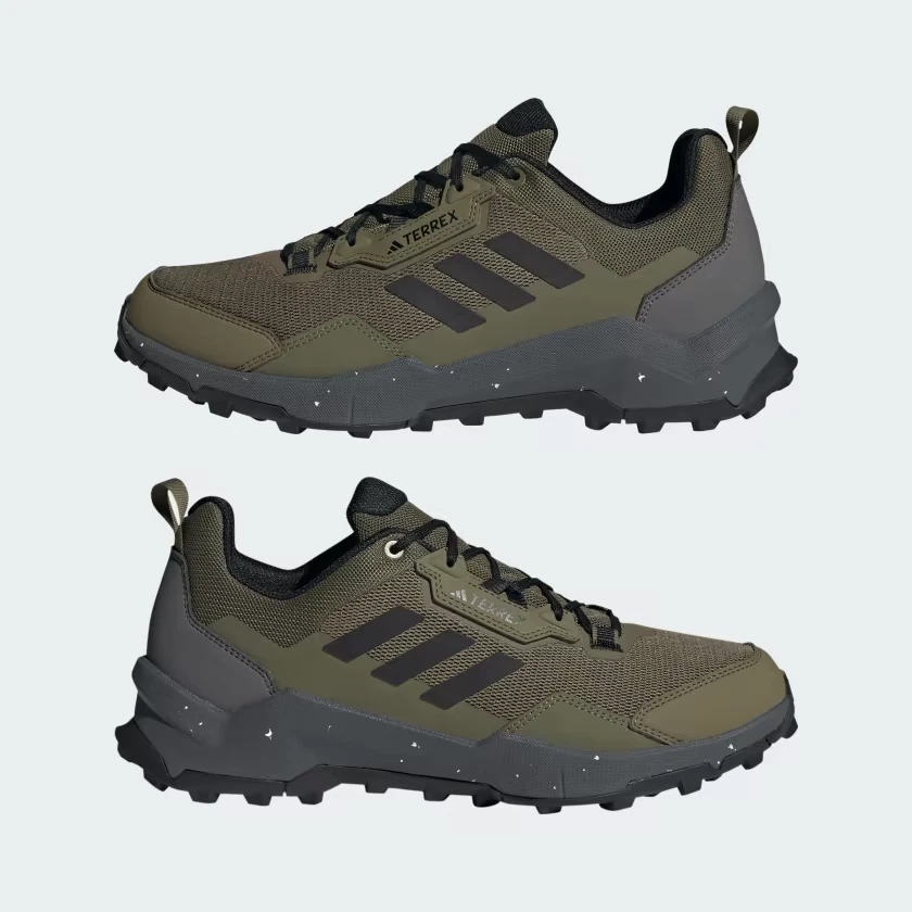 $100.00 MSRP Versatile hiking shoes made in part with recycled materials. The outdoors is made for exploring, and these adidas Terrex hiking shoes are built to explore high and low, near and far. Their multi-sport design is light enough for day hikes and technical enough for alpine scrambles and via ferratas. They support your feet with a lightweight yet rugged and stable feel, so you can focus on your route. A gusseted tongue hugs the foot and seals out dust and debris for running-shoe-inspired comfort. The all-conditions grip of Continental™ Rubber means you can move with confidence across rocky scree, wet roots and loose, dusty trails. Lace up, and get out there. Details Wide fit Lace closure Mesh upper with synthetic overlays and gusseted tongue Abrasion resistant EVA midsole Textile lining Continental™ Rubber outsole Upper contains a minimum of 50% recycled content Imported Product color: Focus Olive / Core Black / Grey Five Product code: HQ3554