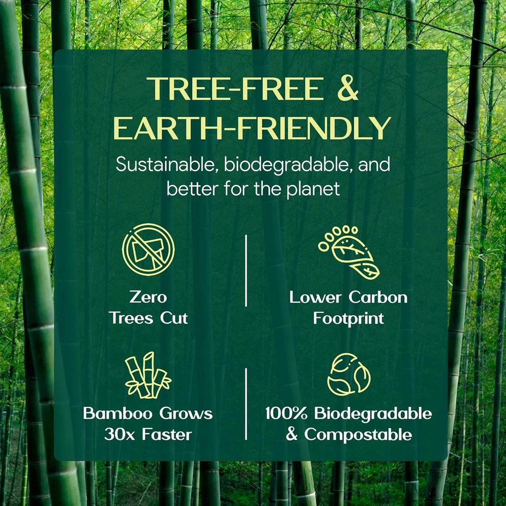 Tree-Free: Palm Naki bamboo toilet tissue – Made from bamboo. Biodegradable and sustainable. A tree-free alternative to paper-based toilet tissue Stronger: Bamboo is renowned for its strength and tear resistance. Absorbent 3-ply bamboo tissue is more durable than regular toilet tissue Pure: Free from inks, dyes, BPA and PFAS for an all natural experience. Every wipe feels clean and fresh, with no lint, dust, or residue left behind Comfort: Palm Naki 100% Bamboo tissue are gentle on your skin and soft to the touch, particularly for sensitive feminine areas Rapid Dissolving: Bamboo dissolves quickly and easily and is safe for all septic systems, especially good for RVs, camping and boating Product description