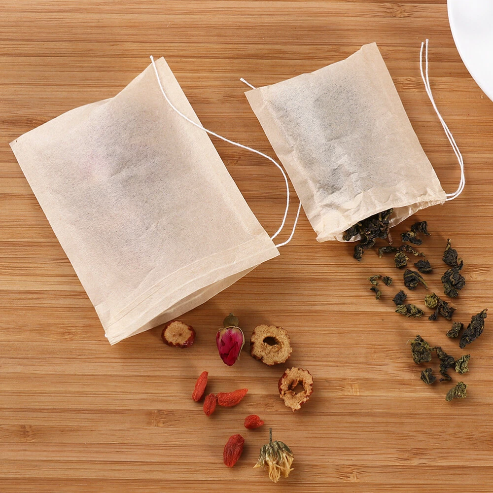 100 Biodegradable Drawstring Tea Bags Food Strainer Pouches with Natural Filters for Loose Leaf Tea Brewing and Spice Storage
