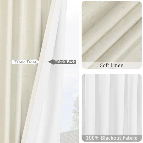 Return Policy Fast Delivery Trusted seller 100% Black Out Curtains 63 Inch Long for Living Room Curtains Natural Linen Beige Bedroom Curtains 2 Panels Set Thermal and Noise Reduction Window Curtains & Drapes Product Description Ready Made: These cream curtains each package include 2 panels of back tab rod pocket curtains blackout, each curtain panel is 52 inches wide and 63 inches long. This window curtains black out provides 5 hanging methods, you can choose the room divider curtains hanging method according to the pleated effect you want (clip rings are not included) 100% Blackout: Our bedroom blackout curtains utilizes advanced blackout coating technology, opaque fabric it can blocks out 100% of light from outside, even during the day, it can provide you with a good sleeping environment, which is more suitable for night shift workers and babies Insulation and Energy Savings: Our pinch pleated curtains provide thermal insulation and energy conservation, keeping you cool in the summer and warm in the winter. Reduce noise and light disturbance, balance indoor temperature and create a more comfortable environment. Our curtains are also waterproof, so they are also suitable for outdoor curtains Natural Linen Blend: These cream beige curtains linen are made of 30% linen blend fabric, which is more durable than ordinary blackout curtains on the market, wrinkle and environmentally friendly, and the linen texture curtains can create a lazy and comfortable room atmosp, blackout linen curtains are easy to maintain and have a good drape, suitable for all styles Notice: Microfiber fabric with flock on the back. These short black out curtains may be wrinkled during transportation, so when you received, you can iron at low temperature settings. Machine washable below 86℉ and please aviod wringing, dry cleaning, bleaching Shipping Returns Payment Shipping Shipping is FREE to all addresses other than APO/PO boxes in the lower 48 states. All our stock ships from US-based warehouses. Shipped via USPS or UPS (depending on location and package weight) Unless stated otherwise, all orders will ship within 24-72 hours of your payment being processed. Check our feedback to see the great reviews of FAST shipping we offer. Returns Seller does not accept returns Payment We currently accept payment via eBay managed payments only. Once payment is cleared, we will dispatch your shipment within 1-3 business days. Please refer to the "Shipping" tab for more information regarding shipping speed to your destination.