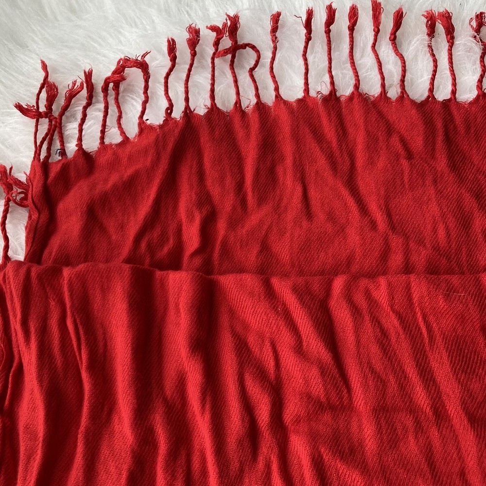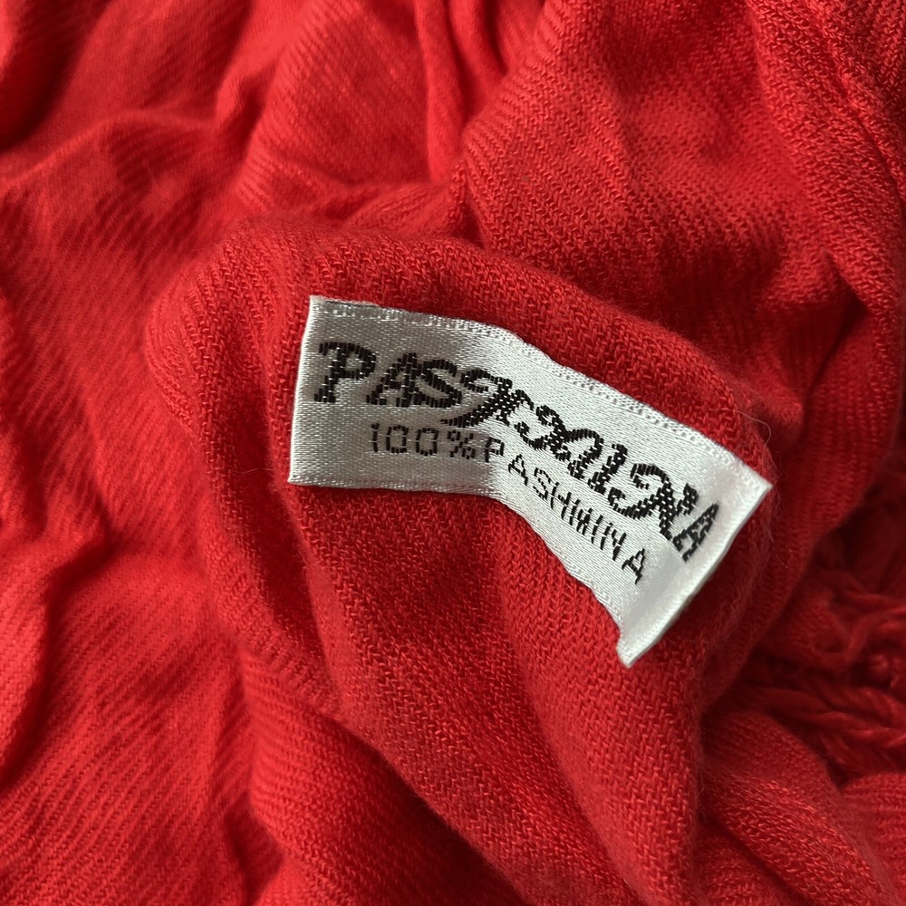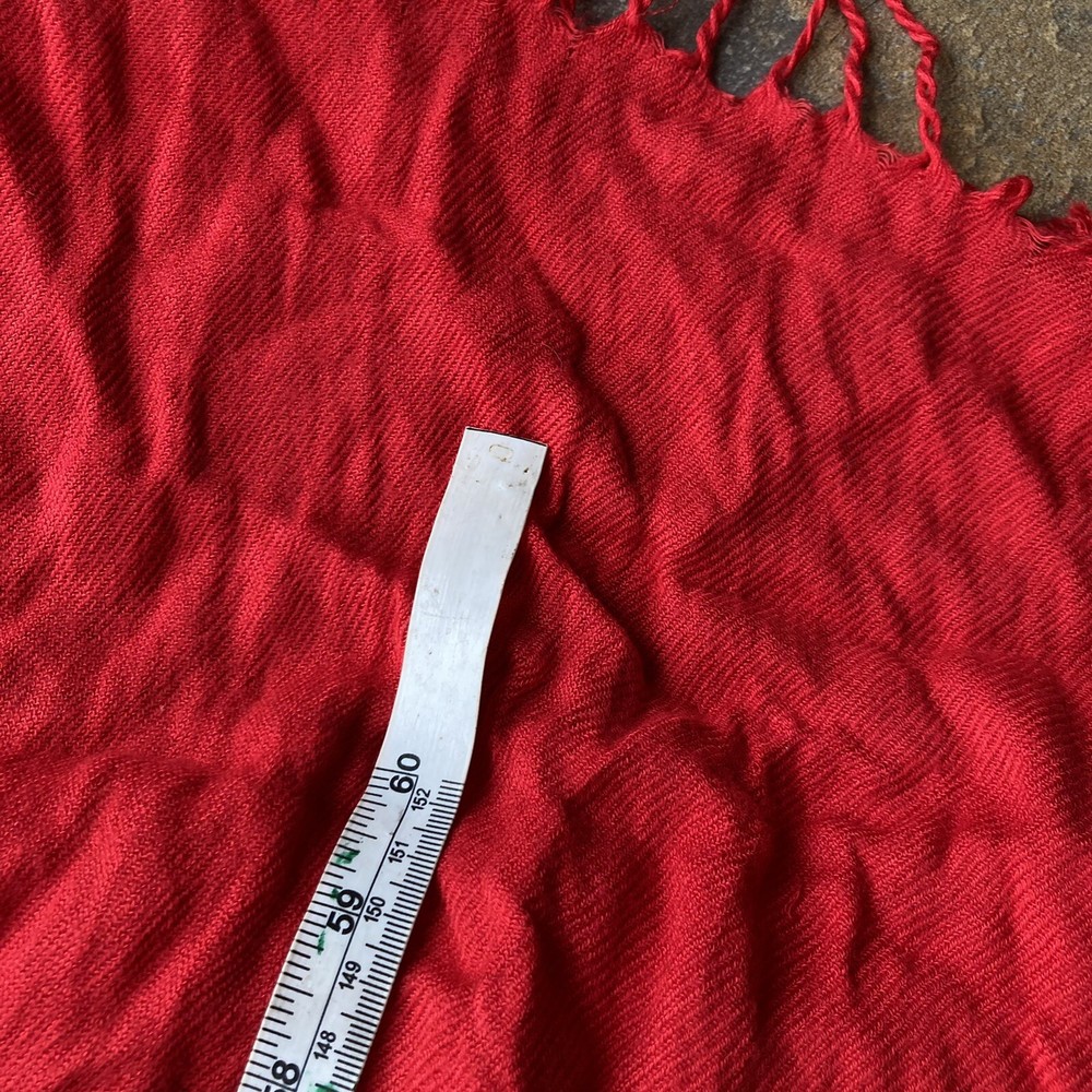 Pashima 100% Cashmere Women’s Scarf, Bright Festive Red Tasseled 68" X 27". In gently used condition minus a couple of snags Please look over pictures before purchasing