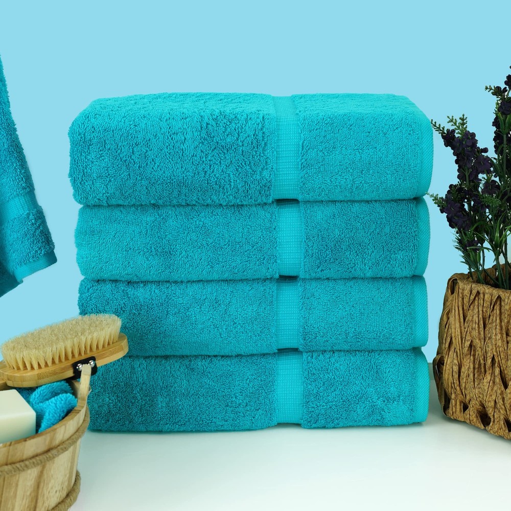 | Hotel & Spa Quality 100% Cotton Premium Turkish Towels | Soft & Absorbent (4-Piece Bath Towels, Aqua) PREMIUM TURKISH TOWELS: Crafted from 100% ring spun premium cotton, these towels offer exceptional absorbency and a soft, luxurious feel. Experience the spa-like indulgence within the comfort of your home. SET INCLUDES: This set consists of 4 bath towels sized 27 by 54 inches. These excellent and functional measurements are ideal for the everyday purposes of these towels. DURABLE AND LONG-LASTING: With a double-stitched hem and a natural weave, our towels are designed for lasting durability and strength, ensuring they withstand regular use and frequent washing without losing their quality. SAFE: We care about your well-being and the environment. Our towels are OEKO-TEX STANDARD 100 certified and tested for harmful substances, guaranteeing that they are free from any harmful chemicals, making them safe for you and your loved ones. THE PERFECT GIFT: Whether it's a housewarming, wedding, birthday, anniversary, or holiday celebration like Christmas or Thanksgiving, our high-quality towels make a perfect gift choice. Treat your loved ones to the ultimate in comfort and luxury with these exquisite bathroom towels. EXCEPTIONAL TURKISH TOWELS These high-quality hotel and spa collection towels are now available to you! Made from 100% long staple, super absorbent and natural Turkish cotton, our towels will give you the feel of luxury comfort. Chakir Linen towels will give your bathroom the aura of being in a beautiful resort, because of its relaxing touch after a long and stressful day. We have been manufacturing Turkish towels for over 20 years and we are experts in our craft of producing high quality cotton towels and pride ourselves on only making the finest. THE DIFFERENCE IN OUR TURKISH TOWELS! PREMIUM TURKISH COTTON! Turkish cotton is a premium cotton that has extra-long fibers, which makes Turkish towels delightfully absorbent! These towels are also known to become softer, fluffier, and more absorbent with each wash due to its unique material. The double-stitched hem and the natural weave on our towels guarantee durability and strength. Our towels are also Oeko-tex and ISO 9001 certified meaning the towels are free from harmful chemicals and are safe for you and the environment. EASY CARE STEPS! STEP 1: Wash towels in cold water before first use (The cold first wash will open up the fibers to make it more plush) We recommend that you soak the towels in cold water for 12 hours and then hang them to dry for maximum absorbency and softness. Please AVOID fabric softener, dryer sheets and/or bleach as the chemicals will only reduce the softness of the towels. Step 1 is not to be repeated afterwards just continue step 2! STEP 2: Tumble dry towels on low heat. SATISFACTION GUARANTEE! You will love the soft, luxurious feel and the quality of first-rate luxury hotel and spa collection towels. If 100% satisfaction is not met our customer service team would be happy to hear your concerns. Shipping We offer FREE shipping on all orders! We ship within Three business days of payment, usually sooner. We use a selection of shipping services such as UPS, FedEx, USPS etc. We only ship to the lower 48 states, no APO/FPO addresses or PO Boxes allowed. Local pickups and combined shipping options are not provided at this time. Return You can return a product for up to 30 days from the date you purchased it. Any product you return must be in the same condition you received it and in the original packaging. Please keep the receipt. Payment We accept payment by any of the following methods: PayPal Please pay as soon as possible after winning an auction, as that will allow us to post your item to you sooner! Feedback Customer satisfaction is very important to us. If you have any problem with your order, please contact us and we will do our best to make you satisfied. Contact Us If you have any queries, please contact us via ebay. We usually respond within 24 hours on weekdays. Please visit our eBay store to check out other items for sale! Thank you for shopping at our store.