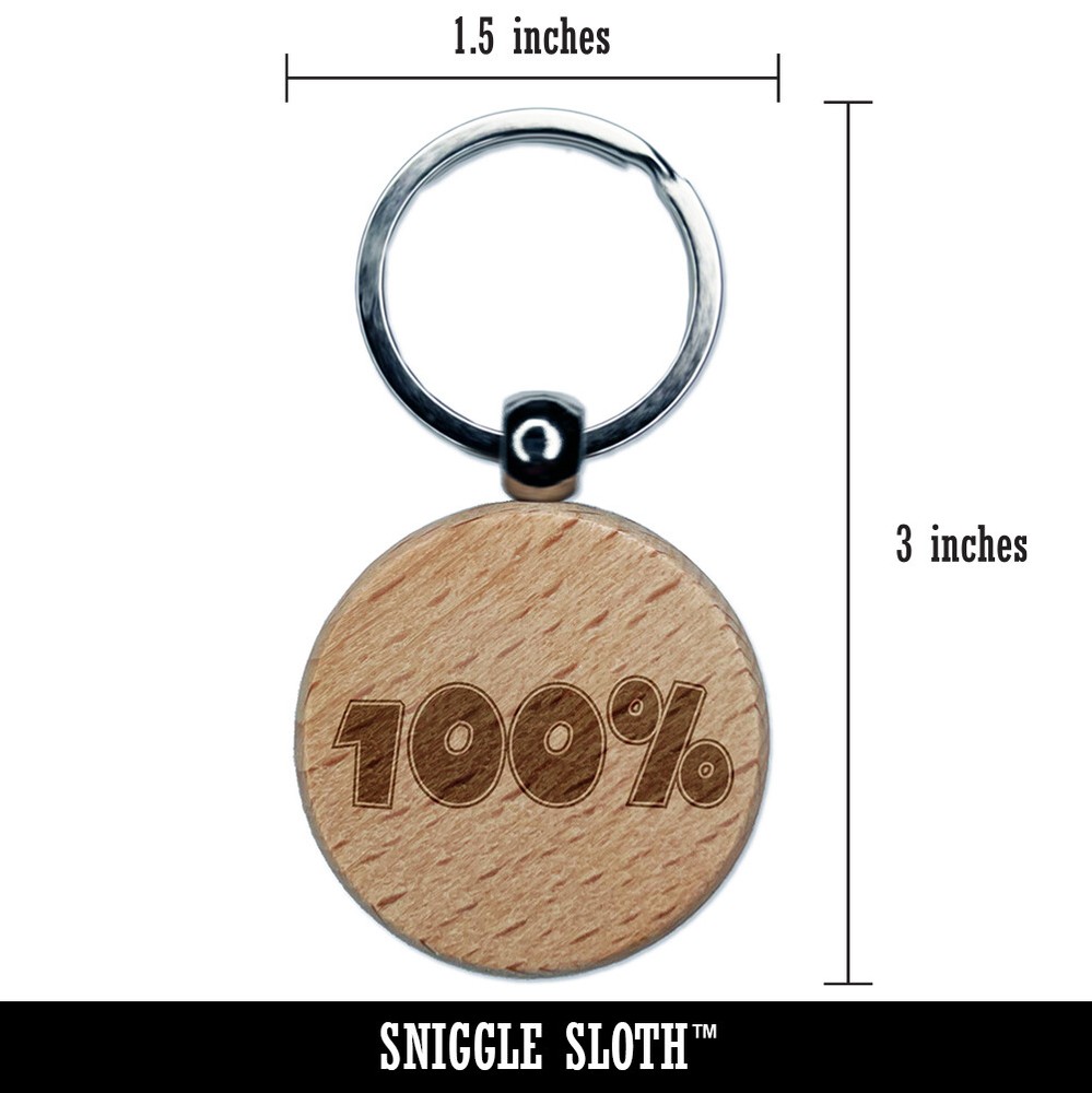 100% Fun Text Engraved Wooden Round Keychain Charm Tag