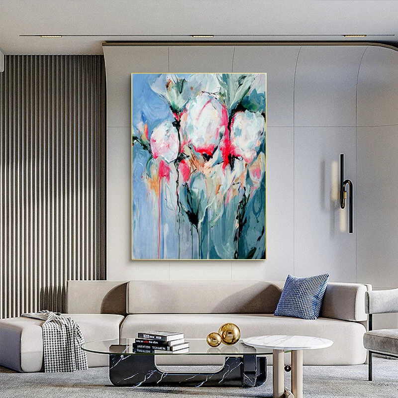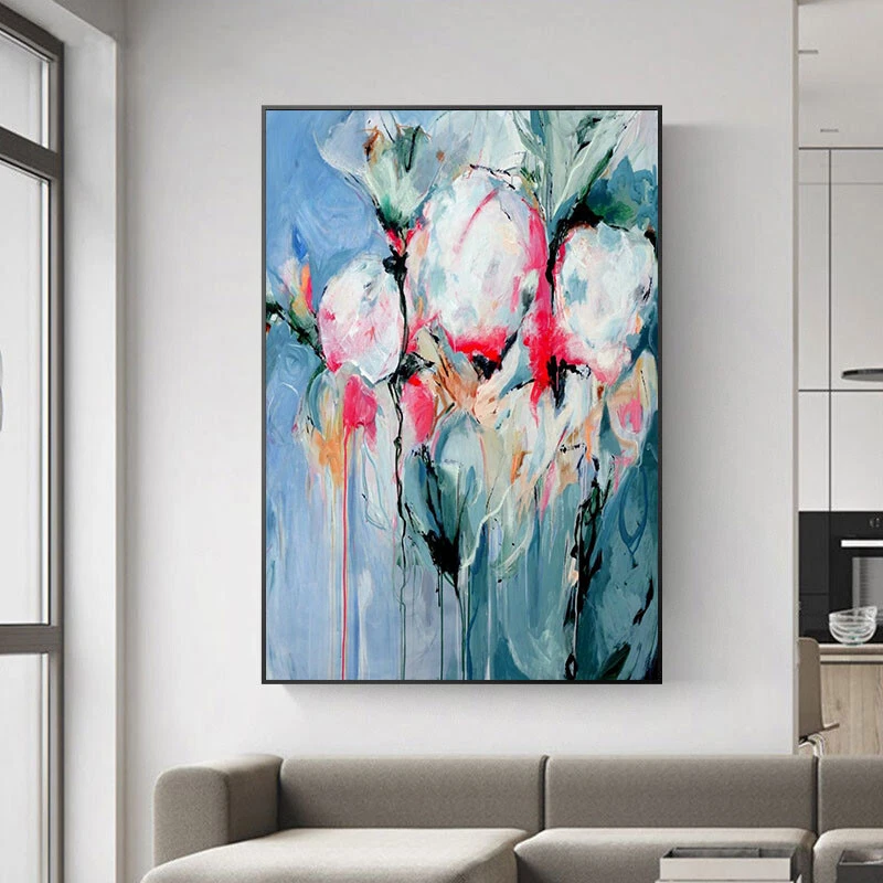 100% Hand-painted Blue Tulip modern Art Picture For Living Room Decoration Large