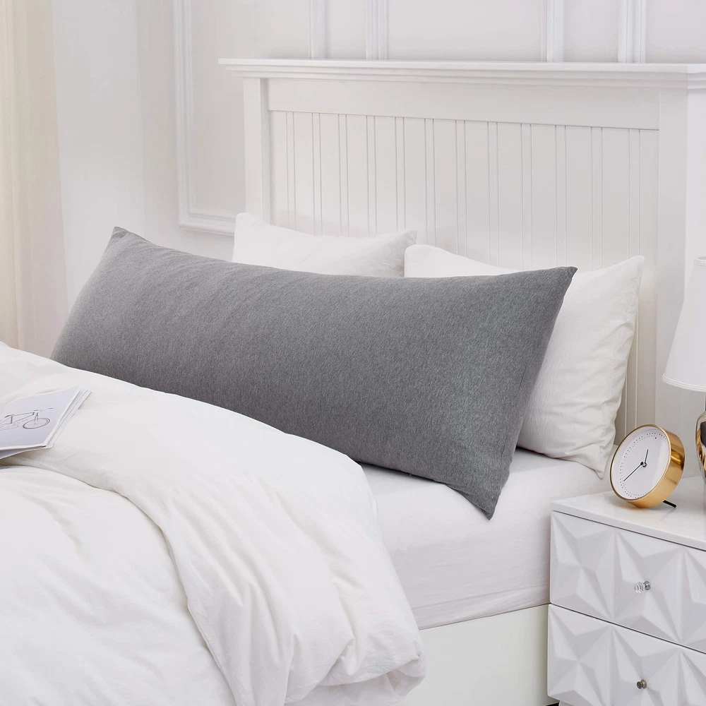Material: Jersey Cotton Size: 21"X54" Pillows are not include Luxury Hotel Pillowcase: Experience the comfort of sleeping on a cloud with our high-quality pillowcase, suitable for fit body pillows measuring 20x54 or 21x54 inches. Tip: The hidden zipper is on the long side of the cover. Made with 100% Cotton: This pillowcase offers great breathability, softness and comfort. Pure cotton is more skin-friendly and has better moisture absorption compared to synthetic materials, allowing you to maintain a dry sleeping environment. It is a comfortable choice for all seasons. Knitting Technique: Compared to regular cotton, knitted cotton is more elastic and breathable, keeping you cool and comfortable throughout the night. This technique is widely used in clothing, home textiles, and bedding. The texture is also gentle on the skin, making it suitable for those with sensitive skin. It's a great choice for those who appreciate the breathability and moisture-absorption of cotton. Lightweight and Soft: This body pillowcase is made of lightweight fabric that fits closely to the body, providing comfort without feeling heavy or restrictive. Care Instructions: Machine washable in warm water, avoid using bleach. We recommend air drying or low-temperature tumble drying to reduce pilling. If ironing is needed, use a low-temperature and gentle iron to restore its neatness and appearance.
