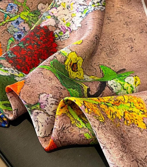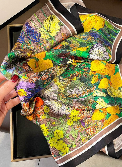 Style: Scarf Shape: Square Color: Green Pattern: Floral Material: 100% Silk gtin13: Does not apply Type: Bandana/Square Scarf Department: Women UPC: Does not apply Season: Fall, Spring, Summer, Winter MPN: Does Not Apply Brand: Unbranded Fabric Type: Satin