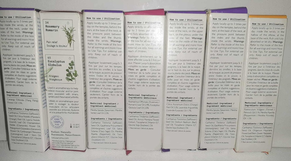 Lotus aroma Headache x2 Nausea,Stress,Insomnia,Muscular Pain x2 Lotus aroma Headache This product falls within the following Thoughtful Choices™ criteria: • No animal testing • Formulated without the following Parabens, Phthalates, SLS, SLES, Triclosan, Formaldehyde, Formaldehyde Releasing Agents, Hydroquinone Spearmint. Used in aromatherapy to help relieve headache. Stress Ylang Ylang and Laurel Leaf. Used in aromatherapy as a nervine/calmative. Lotus aroma Nausea Used in aromatherapy as a nervine/calmative. Used in aromatherapy as a carminative/antispasmodic for the symptomatic relief of digestive discomfort. 100% natural NPN formula (proven efficacy) in a practical size easy to carry-on. Aromatherapy is a holistic healing treatment that uses natural plant extracts to promote health and well-being by using aromatic essential oils to improve the health of the body and mind. This essential oils roll-on blend helps to bring symptomatic relief of digestive discomfort. Lotus aroma Insomnia Orange & True Lavender. Used in aromatherapy as a nervine/calmative to help find sleep. Lotus aroma muscular pain Used in aromatherapy to help relieve muscular and/or joint pains associated with strains, sprains and rheumatoid arthritis. 100% natural NPN formula (proven efficacy) in a practical size easy to carry-on. Aromatherapy is a holistic healing treatment that uses natural plant extracts to promote health and well-being by using aromatic essential oils to improve the health of the body and mind. This essential oils roll-on blend helps to relieve muscular and/or joint pains associated with strains, sprains and rheumatoid arthritis. Retail for 22$ each plus tax