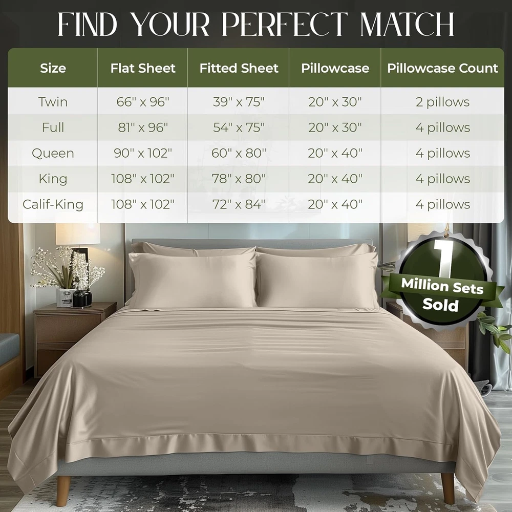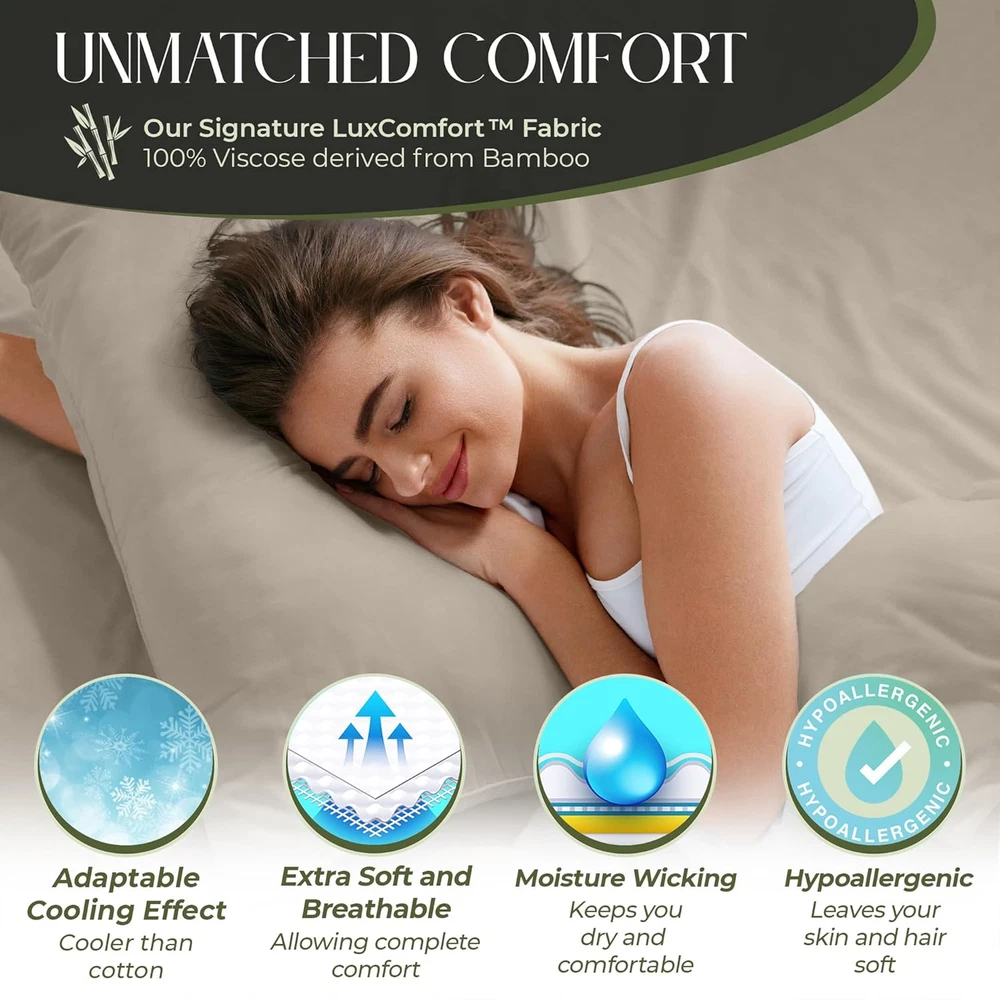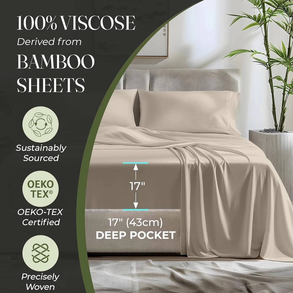 Store New Arrivals Add to Favorite View Feedback Contact 100% Organic Viscose Derived from Bamboo Sheets Queen Size 6Pcs - Ultra Soft & Luxuriously Cooling, 17" Deep Pocket, Double Stitching, Perfect for Hot Sleepers - Queen Bed Sheets (Taupe) Description Style Modern Weave Type Sateen Pattern Solid Country of Origin China Theme Holiday Number of Pieces 6 Unit Count 6.0 Count Pillowcase Quantity 4 Material viscose derived from bamboo Age Range (Description) Adult Seasons All, Summer, Fall, Spring Package Dimensions 13.62 x 10.79 x 3.9 inches Closure Type Envelope Item Weight 6.3 pounds Occasion Mother’s Day, New Year’s, Housewarming, Anniversary, Birthday Fitted Sheet Pocket Depth 17 Inches Special Feature Temperature Regulation, Fade Resistant, Hypoallergenic, Deep Pocket, Wrinkle Resistant Color Taupe Thread Count 300 Included Components Pillowcase, Fitted Sheet, Flat Sheet Size Queen UNMATCHED COMFORT & SOFTNESS: Our unique 100% viscose derived from bamboo sheets queen size deliver an unparalleled softness and a smooth, luxurious texture. OEKO-Tex Certified viscose derived from bamboo bed sheets are silky-smooth & naturally hypoallergenic SLEEP IN COOLING BLISS: Elevate your sleep with viscose derived from bamboo cooling sheets. Naturally temperature regulating bed sheet set, moisture-wicking, and innovative Breezweave technology for breathability. Luxury sheets for ultimate relaxation BUILT TO LAST: Our Queen sheets set is made from 100% viscose derived from bamboo that withstands longer wash cycles and is fade-resistant. Precise double stitching on sheets provides lasting durability and exceptional strength PERFECT FIT FOR All BEDS-6-PIECE SET: Discover the ultimate fit with our Queen size sheets set tailored for standard mattress dimensions, with a deep 17" pocket for extra-thick mattresses. Package Includes 1pcs Flat Sheet (90x102)inch, 1pcs Fitted Sheet (60x80)inch, 4pcs Pillow Cases (20x30)inch AFFORDABLE LUXURY & DURABILITY: DECOLURE Bed Sheets are made from high-grade viscose derived from bamboo, offering a smooth, wrinkle-free surface with exceptional softness; enjoy lasting quality and luxury without compromising on durability Product Description POPULAR DECOLURE BEDDING SHEETS SETS Add to Cart Add to Cart Add to Cart Add to Cart Add to Cart Customer Reviews 4.6 out of 5 stars 823 4.5 out of 5 stars 3,793 4.1 out of 5 stars 865 4.3 out of 5 stars 15,509 4.3 out of 5 stars 809 Price $69.99 $ 69 . 99 $79.99 $ 79 . 99 $37.95 $ 37 . 95 $31.95 $ 31 . 95 $31.95 $ 31 . 95 MATERIAL 100% Viscose from Bamboo 100% Viscose from Bamboo Bamboo Microfiber 100% Satin 100% Satin MACHINE WASHABLE ✔ ✔ ✔ ✔ ✔ WRINKLE & STAIN RESISTANT ✔ ✔ ✔ ✔ ✔ ADDITIONAL BENEFIT Cooling Cooling Cooling Great for Hair & Skin Great for Hair & Skin PILLOWCASE COUNT 4 2 2 2 4 EXTRA DEEP POCKET 17 inches 17 inches 14 inches 15 inches 15 inches NUMBER OF COLORS 15+ 15+ 10+ 25+ 15+ OEKO TEX CERTIFIED ✔ ✔ ✔ ✔ ✔ ABOUT US We offer the best prices around on high quality products. Our E-store includes media such as books, movies, music and games while offering electronics, toys, sporting apparel, clothing, tools, general home, garden items and more. SHIPPING We are always working hard to ensure your package arrives as soon as possible. Please understand that some factors like weather, high postal traffic, and the performance of shipping companies are outside of our control. We offer free shipping to the lower 48 states and ship within 2 business days of payment, usually sooner. We do not accept P.O. Boxes. Please provide a physical address. For shipping outside of the continental USA, we only use eBay's Global Shipping Program.The item is shipped to KY and then sent to the rest of the world. International customers are responsible for all duties and taxes. Continue to check out in order to calculate costs for shipping the item to your country. Messages regarding eBay's Global Shipping Program MUST be directed at eBay EXCLUSIVELY. RETURNS We offer a 30-Day Return Policy on items which you are not completely satisfied with. You have the option for a full-refund or an exchange of the item. No returns are available on items shipped outside of the USA. PAYMENT We accept PayPal. CONTACT US This page content is yet to come Please ad us to your favorite seller and visit again later Thank You CUSTOMER SATISFACTION We try our very best to make sure every customer is completely satisfied. If there's a problem, message us! We're happy to help. WE ACCEPT Copyright © 2021 AutoDS. | All Rights Reserved