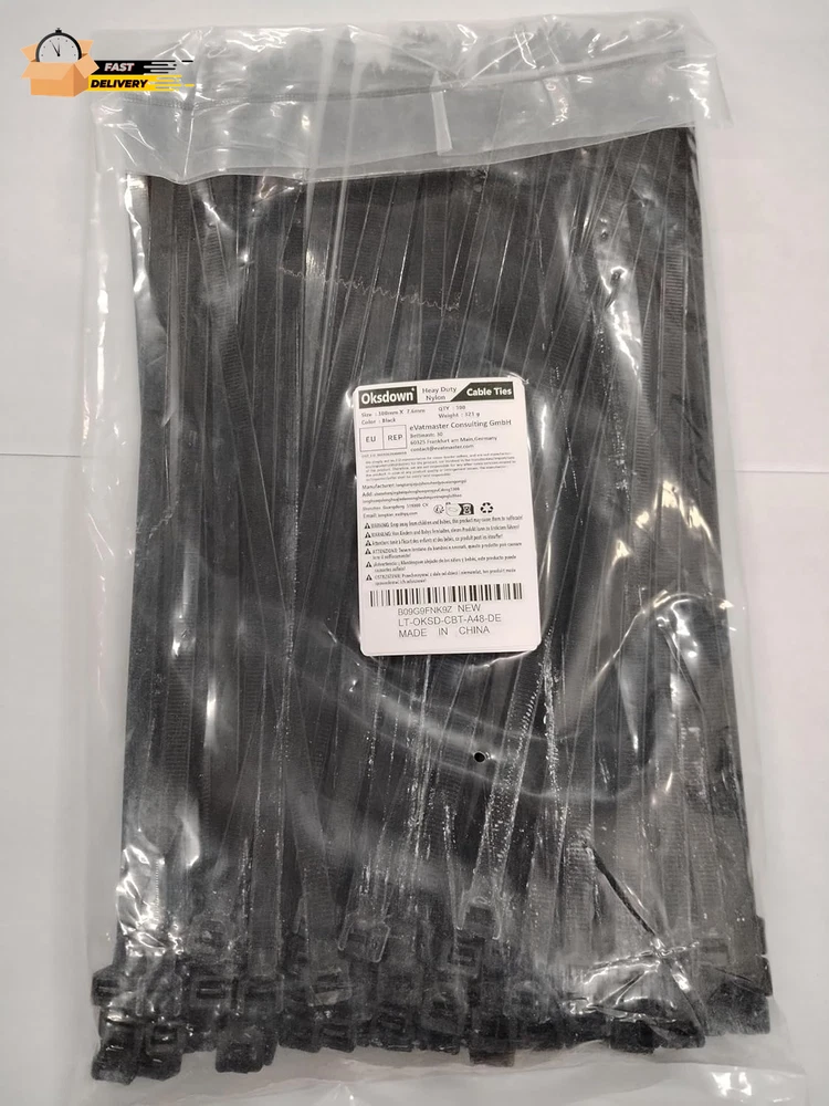 Store New Arrivals Add to Favorite View Feedback Contact 100 Pack 12 Inch Black Heavy Duty Zip Ties Thick Cable Ties with 120 Lbs Tensile Strength Large Plastic Wire Ties Description Item model number LT-OKSD-CBT-A48-FR Style Zip Number of Pieces 100 Color Black Material Plastic Country of Origin China Tensile Strength 120 Pounds Item Weight 11.6 ounces Item Length 12 Inches Size 12" (120lb) Package Contains: 100 Pcs Heavy Duty Cable Ties Size: Length 300mm/12 Inch Width 7.6mm/0.3 Inch(Tensile Strength: 120 Pounds) Color: Black Material: Durable, UV-Resistant Nylon 6/6 Perfect for: Commercial Purposes, Home DIY, Cable Management, Special Events, Workshop, Office, Packaging, or in the Garden Product Description 100 Pack 12inch*120lb Nylon Cable Ties Commercial use: Factory buildings and computer rooms can be used to bundle power cords. It can also be used to fix shelves, organize printer cables, etc. Home DIY: The family can be used to hang knives, small toys, curtain pull loops and the neatness of the tablet TV cable, tighten snack bags, tie garbage bags, fix water pipes, etc. Life: When traveling, we can use it to fasten luggage zippers, tie shoelaces, bicycle brake lines, blow bubbles, and hang balloons and LED lights during parties. Garden: You can tie the plants in the courtyard to the fence of the garden, and you can also fix the pet's cage. Office: It can be used to organize laptop cables/phone charger cables/USB data cables/headphone cables, as well as plug-in cables, etc. Cable management Fixed water pipe Bundled food Tighten slippers ABOUT US We offer the best prices around on high quality products. Our E-store includes media such as books, movies, music and games while offering electronics, toys, sporting apparel, clothing, tools, general home, garden items and more. SHIPPING We are always working hard to ensure your package arrives as soon as possible. Please understand that some factors like weather, high postal traffic, and the performance of shipping companies are outside of our control. We offer free shipping to the lower 48 states and ship within 2 business days of payment, usually sooner. We do not accept P.O. Boxes. Please provide a physical address. For shipping outside of the continental USA, we only use eBay's Global Shipping Program.The item is shipped to KY and then sent to the rest of the world. International customers are responsible for all duties and taxes. Continue to check out in order to calculate costs for shipping the item to your country. Messages regarding eBay's Global Shipping Program MUST be directed at eBay EXCLUSIVELY. RETURNS We offer a 30-Day Return Policy on items which you are not completely satisfied with. You have the option for a full-refund or an exchange of the item. No returns are available on items shipped outside of the USA. PAYMENT We accept PayPal. CONTACT US This page content is yet to come Please ad us to your favorite seller and visit again later Thank You CUSTOMER SATISFACTION We try our very best to make sure every customer is completely satisfied. If there's a problem, message us! We're happy to help. WE ACCEPT Copyright © 2021 AutoDS. | All Rights Reserved