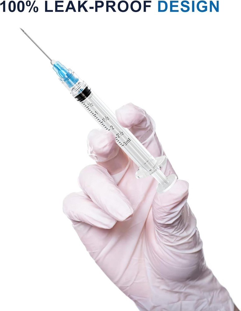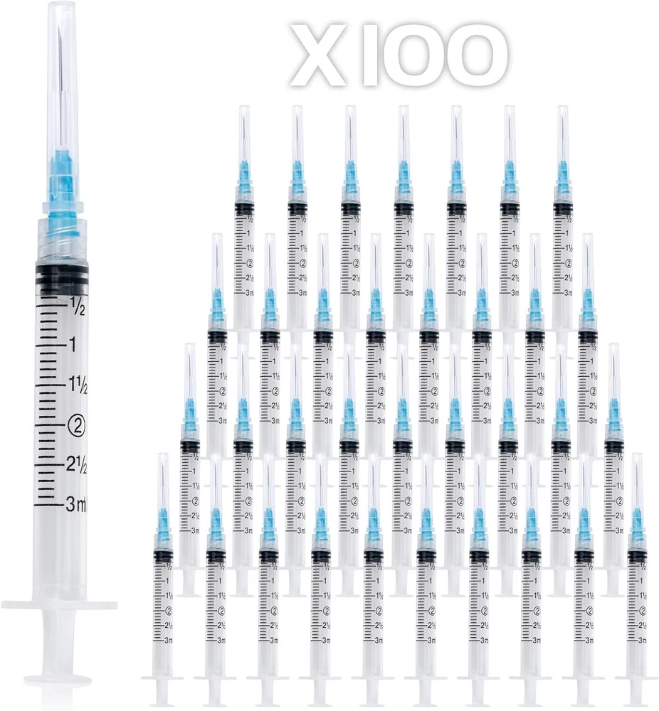 CareLiving 100 Pack 3ml Syringes 23G, 1.0 inch Needle Luer Lock Syringe Individually Packaged (3ml, 100) About this item 100 x Syringes: 100pcs 3ml 23G industrial syringes, each of which is individually sealed and packed. High quality: thick cylinder, clear measurement mark, clear printing, smooth plunger work. Luhr lock and safety cap: The Luhr lock keeps the needle from falling off easily, and the protective cap makes it safer. Widely used: It can be used in metering, dispensing liquid, essential oil, perfume separator, lubricants, sealants, glue adhesives, pet and animal products. Note: Suitable for industrial and scientific, laboratory experiments, perfume separators, pet supplies or household tools, etc. Delivery within 3-4 days. Shipping as fast as possible Please contact if you have a question! HAVE A NICE SHOPPING