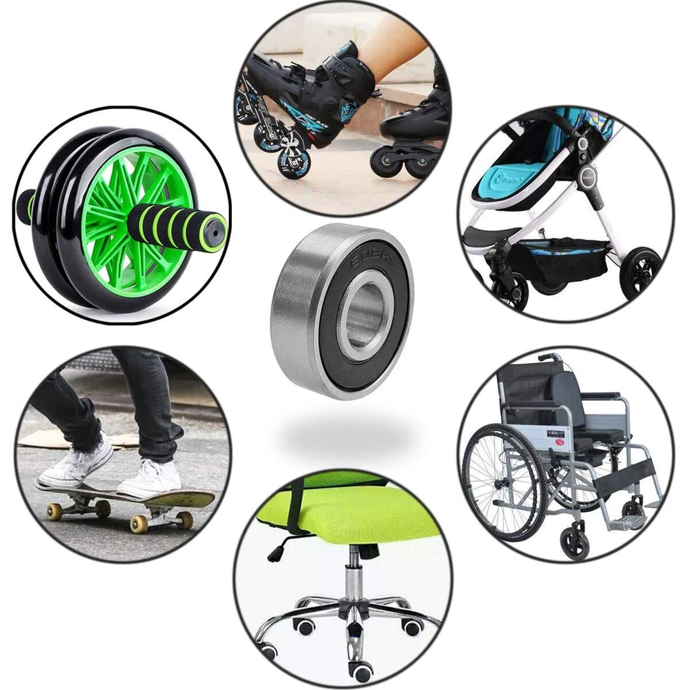 608-2RS miniature radial ball bearing has red double seals and a nylon cage, and conforms to the ABEC 1 precision standard. This light duty bearing has an 8 mm bore diameter, a 22 mm outside diameter, and a 7 mm width. Its precision is rated at ABEC 1 by the Annular Bearings Engineers Committee (ABEC), allowing higher speeds and creating lower friction than less-precise ball bearings, and its radial internal clearance is C3 for radial slack between the inner and outer rings is greater than CN (normal) to compensate for thermal expansion. This bearing is made of ASTM International 52100 steel and heat treated to increase hardness for optimum wear resistance. Its deep ball grooves in both races support high radial and axial loads, its straight bore fits conventional cylindrical shafts, and its nylon cage prevents the balls from coming into contact with each other during use, reducing friction, vibration, and noise. Removable single lip contact seals on both sides protect against contaminants and retain lubrication applied at manufacture. This ball bearing is suitable for use in skate boarding, inline skating, and other skating applications. Single-row radial ball bearing for applications that support radial and axial loads Conforms to the ABEC 1 precision standard for performance within a narrow range of variation Through-hardened 52100 bearing quality steel for optimum wear resistance steel cage evenly spaces balls for reduced friction, vibration, and noise Removable single lip contact seals on both sides to protect against contaminants and retain lubrication