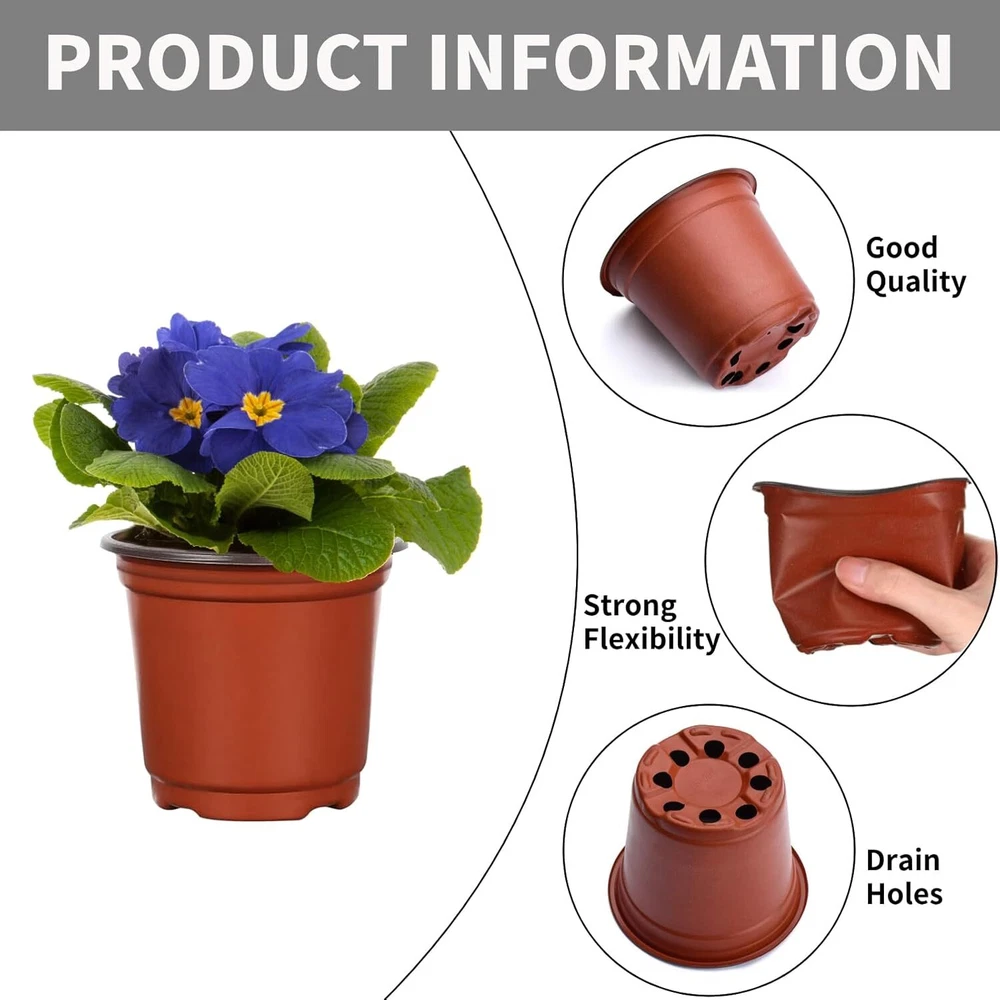 100 Pcs 6 Inch Plant Nursery Pots Bulk Plastic Pots Plants Seed Starting Pots Enough Quantity: you will receive 100 pieces of plastic plant pots in classic brown, sufficient quantities can meet your needs for planting multiple seedlings at once; Size Information: the outside top diameter of the seedling pots is about 4 inches, and the height is about 3.35 inches, you can place them anywhere you like without taking up too much space; You can stack them together when not in use for convenient storage and space saving Reliable and Sturdy: the plastic plant pots are made of PP material, lightweight and sturdy, will not break or deform easily, can serve you for a long time; The plant pots have a little plastic smell, just put them in a ventilated place to disperse the smell after receiving the package Drainage Holes Design: the planting pots are designed with small drainage holes at the bottom, which can drain excess water and promote air circulation, to prevent plant roots rot and improve the seed survival rate; These pots are easy to move, carry and stack with a top raised rim Wide Applications: the plastic planter can be widely applied for starting seedlings, succulent propagation and indoor outdoor plants planting, including vegetables, herbs, succulents, and flowers, essential supplies for your mother, wife, gardeners and farm Shipping We offer FREE shipping on all orders! We ship within Three business days of payment, usually sooner. We use a selection of shipping services such as UPS, FedEx, USPS etc. We only ship to the lower 48 states, no APO/FPO addresses or PO Boxes allowed. Local pickups and combined shipping options are not provided at this time. Return You can return a product for up to 30 days from the date you purchased it. Any product you return must be in the same condition you received it and in the original packaging. Please keep the receipt. Customer satisfaction is very important to us. If you have any problem with your order, please contact us and we will do our best to make you satisfied. Contact Us If you have any queries, please contact us via ebay. We usually respond within 24 hours on weekdays. Please visit our eBay store to check out other items for sale! Thank you for shopping at our store.