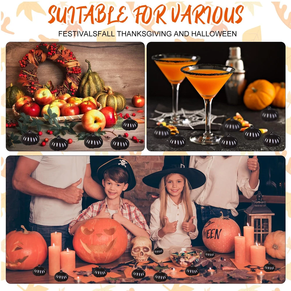 Features: Our fake decorative pumpkins boast lifelike detailing, making them a convincing alternative to the real thing. From the stylish shape to the stem details, these pumpkins aim to deliver the most realistic look. Looking for an unconventional yet thoughtful present? These charming and fun pumpkins fall decors make a delightful gift for those who love autumn or have an interest in interior decoration. Specifications: Material: plastic Color: black Size: about 1.38 x 1.18 inches/ 3.5 x 3 cm Package includes: 100 x Black pumpkins for decorating Notes: Manual measurement, please allow slight errors on size. The color may exist a slight difference due to different screen displays. Plentiful Quantity: this set includes 100 pieces of fall artificial pumpkins for outdoor, providing you with a substantial volume of cute mini pumpkins to spread around your home or workplace, this makes them a reasonable solution for your fall themed or Thanksgiving decorations Authentic Design: our fall plastic decorative pumpkins are designed to replicate the natural black color of real life pumpkins, adding an authentic touch to your fall decor; This vivid black color can create a warm and nostalgic ambiance for your holiday gatherings Ideal Size: our black pumpkins for decorating come in a mini size of approximately 1.38 x 1.18 inches/ 3.5 x 3 cm; This compact size makes them the ideal fit for your table centerpieces, fireplace mantels, or other places where space is a concern Material Durability: made from sturdy plastic, these fall mini pumpkins are designed to last, they're resistant to wear and tear, lightweight and portable, ensuring their vibrant color and charming appearance remain intact over time Versatile Applications: these fall mini pumpkin decorations offer versatility in terms of decoration, you can use these as coffee table decor, adorn your living room shelves, or even fill a glass jar for a creative display; And they're also available for DIY fall wreaths, rustic centerpieces, or holiday flower arrangements, you can also use them to decorate the table, backyard, garden, fall themed parties, weddings, celebrations, and more