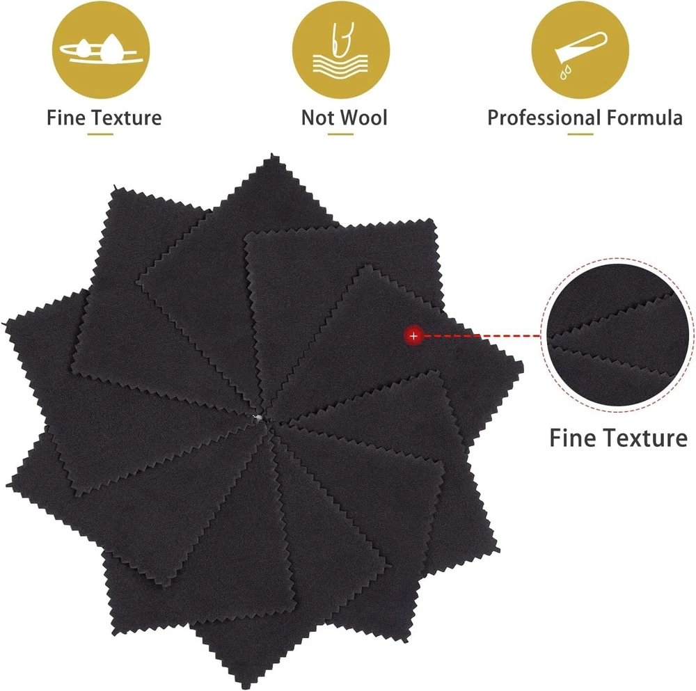 100pcs Premium Jewelry Cleaning Cloth, Silver Polishing Cloth Individually Wrapped, for Sterling Silver, Gold, Brass, Silverware, Coin, Ring, Watch and More (Black, 3.15" x 3.15") 【BETTER EFFECT THAN COTTON】The Jewelry Cleaning Cloth is made of high quality microfiber fabric, which does not lose hair, fine texture, harmless and tasteless.The professional formula makes it more effective than cotton cloth in decontamination and rust removal. 【PERFECT SIZE AND QUANTITY】The silver polish cloth is 3.15 "X3.15" (8cmX8cm) in single sheet, individually packed. Small silver cleaning cloth is not only convenient to travel, but also very suitable for jewelers as gifts to customers. 【EASY TO USE】Polishing cloth for silver gold brass and most other metals. Double-sided polishing design, easily remove the scratches and rust on the jewelry to make your jewelry shine again. 【MULTI-PURPOSE POLISHING CLOTH】Our silver jewelry cleaner cloth is suitable for all kinds of items, such as silver earring, necklace, tableware, musical Instruments, glass, watch and mobile phone, etc., can meet your various needs. 【What You Get】100 Pcs silver polishing cloth bulk (Pink). Jewelry cleaning solution. Shipping We offer FREE shipping on all orders! We ship within Three business days of payment, usually sooner. We use a selection of shipping services such as UPS, FedEx, USPS etc. We only ship to the lower 48 states, no APO/FPO addresses or PO Boxes allowed. Local pickups and combined shipping options are not provided at this time. Return You can return a product for up to 30 days from the date you purchased it. Any product you return must be in the same condition you received it and in the original packaging. Please keep the receipt. Payment We accept payment by any of the following methods: PayPal Please pay as soon as possible after winning an auction, as that will allow us to post your item to you sooner! Feedback Customer satisfaction is very important to us. If you have any problem with your order, please contact us and we will do our best to make you satisfied. Contact Us If you have any queries, please contact us via ebay. We usually respond within 24 hours on weekdays. Please visit our eBay store to check out other items for sale! Thank you for shopping at our store.