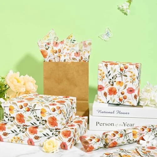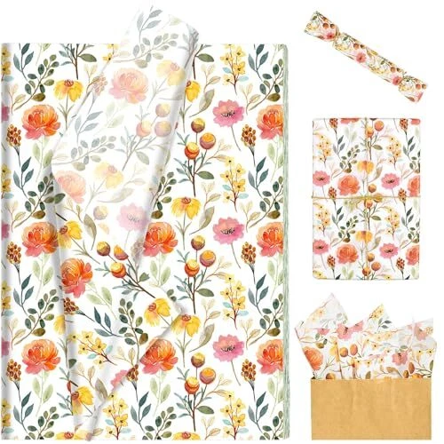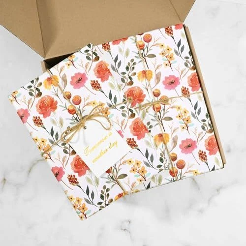 Value Pack: You'll get 100 sheets of floral tissue paper totally, which is sufficient to meet your gift packaging needs at daily life. With its beautiful and delicate pattern, these tissue papers are quite in line with bridal shower, Mother's Day, wedding, etc., adding an artistic atmosphere to your gifts! Watercolor Floral Design: Our floral tissue paper adopts warm tone, printed with beautiful flowers in different styles, berries and green leaves, vivid and attractive, perfect as gift embellishment and party decorations. Size Information: Each floral printed tissue paper measures about 50 * 35 cm/20 * 14 inches, fitting most sizes of gift boxes. They can be cut into the proper size at will, easy and convenient for you to DIY some festive party crafts. Premium Quality: These watercolor flowers tissue papers are made of high-quality paper, not easy to tear, with a good texture, smooth touch, easy to use and fold, perfect for packaging gifts. Versatile Applications: Our floral tissue paper works great as gift packaging materials, great decoration for gift bags, wine bottles and flower packaging on wedding, tea parties, garden party, anniversary, birthday, bridal shower, Mother's Day, etc., also be used for collage, decoupage crafts and scrapbooking in daily life.