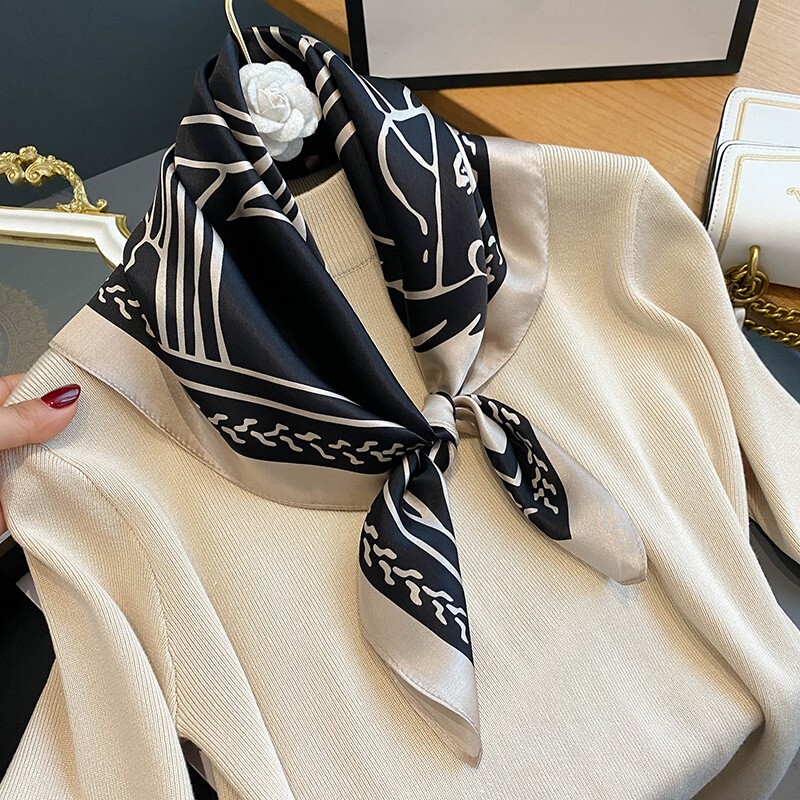 $ 2.52100% Silk Vintage Scarf for Women Black Brown Square Bandana Wrap 68x68cm