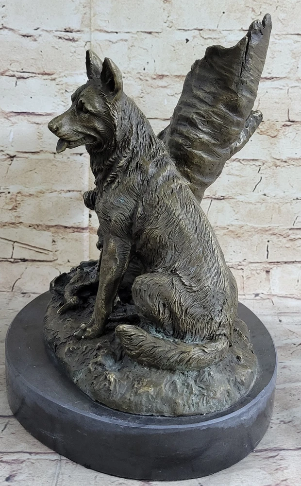 100% Solid Bronze Sculpture Statue Hunting Dogs English Bulldog Shepherd DEAL 100% Solid Bronze Sculpture Statue Hunting Dogs English Bulldog Shepherd DEAL Condition : This sculpture is in perfect condition. Bronze Dimensions with Marble Base: Height 12" X Width 12" Marble Dimensions: Diameter 12" Height without base:11" Weight:25 LBS Inventory:84Y4105248 Immerse yourself in the intensity of the hunt with this captivating bronze sculpture featuring two formidable hunting dogs, a Pitbull and a German Shepherd. Positioned next to a lifeless rabbit and bird, these loyal companions gaze ahead with unwavering focus, ready to execute their owner's command. The scene is set amidst a forest, skillfully portrayed through the inclusion of a tree stump and branches, lending a sense of atmosphere to this remarkable piece. Crafted with meticulous attention to detail, this sculpture exemplifies the artistry of the skilled artisan. Through the ancient technique of lost wax casting, employed for thousands of years, every intricate aspect of the piece is brought to life. From the texture of the creatures' fur and feathers to the nuanced expressions on the dogs' faces, this sculpture is a testament to the beauty and precision that can be achieved through this timeless method. Whether you are a hunter yourself or an animal lover, this exquisite bronze sculpture is a fitting addition to your business or home. It serves as a tribute to the strength, loyalty, and instinctual prowess of hunting dogs. With its grace and beauty, this sculpture makes an exceptional gift for those who appreciate the bond between humans and their animal companions, and the thrill of the chase. HUNTING DOGS ENGLISH BULLDOG SHEPHERD BRONZE SCULPTURE FIGURINE MARBLE BASE DECO www.bronzhaus.com Video will open in a new window Using the eBay App? Paste link into a browser window: [isdntekvideo] Shipping Terms : Most of our items are shipped via USPS (United States Postal Service) mail or UPS. Most orders are shipped within 24-48 hours of purchase. Please be aware that not all items are available for USPS shipping due to size and weight. We do ship to Hawaii, Alaska, Canada, Puerto Rico, APO/AE, and U.S. Virgin Islands, however, an additional charge may be required. Please contact us before making any purchases in these areas. For Non-USA customers, you may be responsible for all duty, tax, brokerage fees that may be due upon delivery (shipping costs cover freight charges only). We also ship internationally. Please refer to the "Shipping and Handling" chart for the rates for each area. Payment : We accept just about any form of payment. PayPal, Master Card, Visa or American Express credit cards. Money orders, cashiers checks, and even personal or business checks. For governmental institutions, we will also accept a purchase order. Please understand that for personal or business checks we have to wait for the check to clear (usually 7 days) before shipping. Condition : New Detailed Hand Crafted Hot Cast Bronze Satisfaction Guaranteed. This is Stock Photo, Slight Color Variation!! Listing and template services provided by inkFrog