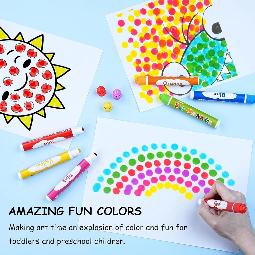 100 Pack Washable Dot Markers - 10 Vibrant Colors for Toddlers' Creativity ‹ › ‹ › ‹ › ‹ › ‹ › ‹ › ‹ › ‹ › 100 Pack Washable Dot Markers - 10 Vibrant Colors for Toddlers' Creativity Features: Includes 10 vibrant colors, each with 12 ml of easy-to-use ink, providing endless artistic possibilities. Non-toxic and acid-free ink ensures safety for children, conforming to ASTM-D4236 standards. Mess-free and washable, easily cleans off hands, clothes, and surfaces with a water-based formula. Lightweight and designed for small hands, providing an effortless grip for toddlers. Facilitates development of crucial skills like shape and color recognition, hand-eye coordination, and memory retention. Benefits: Encourages creativity and expression in young artists. Safe for children to use with confidence. Quick clean-up means more time for fun and less stress for caregivers. Perfect for home, classroom projects, or as a thoughtful gift option. Enhances engagement in educational activities while promoting imaginative play. Why Choose Our Washable Dot Markers? Your little ones deserve the best when it comes to expressing their creativity. Our Washable Dot Markers offer a vibrant palette that brings their artistic visions to life. With safety in mind, these markers are non-toxic and comfortable for small hands. The washable formula ensures a mess-free experience, allowing toddlers to focus on creating without the worry of stains. Make every art time an adventure with the joy of color and discovery. Choose our dot markers for an exciting, safe, and educational art experience for your child! Important Safety Notice: WARNING: CHOKING HAZARD - Packing bag. To avoid the danger of suffocation, keep this plastic bag away from babies and children. Do not use this bag in cribs, beds, carriages, or playpens. This bag is not a toy. Shipping Free & Fast Shipping - We offer free shipping to most of the USA with a normal delivery time of 3-7 days. However, due to the current situation, additional delivery time (up to 3 weeks) may be required for some items. Alternative Carriers - We may use alternative carriers (e.g. USPS, FedEx, UPS, etc.) to ensure your package arrives safely and on time. Due to the use of multiple carriers, we are unable to provide a tracking number automatically. Handling Time - Orders are processed and shipped within 1-2 business days of receiving cleared payment. Shipping Restrictions - Shipping to Alaska, Hawaii, Puerto Rico, Guam, and other US territories may incur shipping charges or delivery restrictions. Please contact us before ordering, or your order can be refunded/cancelled. State Restrictions - There may be restrictions based on your state of purchase. For example, certain items may not be shipped to California due to state regulations. Contact for Tracking Updates - If you require tracking updates or have any concerns about the delivery of your order, please feel free to contact us, and we will be happy to assist you. Return 30-Day Hassle-Free Returns - We want you to be completely satisfied with your purchase. If you are not, you can return the item within 30 days of receiving it for a full refund or exchange. Easy Return Process - To start a return, simply contact us and we will provide you with a prepaid return shipping label and detailed instructions. Restocking Fee - There are no restocking fees for returns. However, the buyer is responsible for return shipping costs if the return is not due to a seller's error. Refund Processing Time - Refunds will be processed within 5 business days of receiving the returned item in its condition. Payment We accept all major credit cards, PayPal, and Apple Pay for your convenience. Your payment information is secure and encrypted to ensure a safe and seamless transaction. Please complete your payment within 3 days of purchase to avoid any delays in shipping. Feedback Your feedback is extremely important to us. We strive to provide the best products and customer service possible. If you are satisfied with your purchase, please take a moment to leave us a positive review. If you have any concerns or issues with your order, please contact us before leaving negative feedback. We are committed to resolving any problems and ensuring your satisfaction. Contact Us If you have any questions or concerns, please feel free to out to our customer support team. You can contact us through the eBay messaging system. We are available Monday to Friday, 9:00 am to 5:00 pm EST, and we will do our best to respond to your inquiry within 24 hours. Buy it now and enjoy a pleasant shopping experience! Model: Dot Markers for Kids MPN: Dot_Markers_for_Kids Unit Quantity: 100 Type: Dot Markers Color: Multicolor Finish: Solid Unit Type: lb
