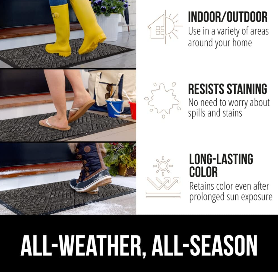 Free eBay listing template designed by dewiso.com 100% Waterproof All-Season WeatherMax Doormat, Durable Natural Rubber, Stain and Fade Resistant, Low Profile, Indoor Outdoor Door Mats, Easy Clean Patio Entrance Mat, 17x29, Gray Diamond Brand Gorilla Grip Size 17" x 29" Material Polypropylene Weave Type Machine Made Item Weight 2.1 Pounds About this item Durable All-Weather Construction: Made with a heavy-duty, yet flexible construction featuring deep grooves, a beveled rubber border, and a retention dam to effectively capture dirt, debris, and moisture from the outdoors. Stain and Fade Resistant: Designed to withstand harsh weather conditions like snow, rain, mud, and sand, while remaining stain and fade resistant for long-lasting use both indoors and outdoors. Effective Dirt and Moisture Capture: The durable woven topside and deep grooves work together to trap dirt, mud, and moisture, helping to keep your home clean and dry. Natural Rubber Backing: Featuring a durable natural rubber backing that provides superior tensile strength, tear resistance, and minimal odor compared to synthetic rubber. Low-Profile Design for Easy Use: With a low 0.3-inch profile, this doormat allows doors to easily open and close over it, making it perfect for high-traffic areas. STOP DIRT AT THE DOOR A strong rubber border helps to form a retention dam trapping excess moisture, while deep patterned grooves capture unwanted dirt and debris. A must-have for any home with kids or pets. The door mat’s fabric topside is ultra soft and cozy under bare feet, making it a perfect choice for both indoor and outdoor use. Product information Brand Gorilla Grip Size 17" x 29" Material Polypropylene Weave Type Machine Made Item Weight 2.1 Pounds Pile Height Low Pile Construction Type Machine Made Back Material Type Rubber Color Gray Diamond Indoor/Outdoor Usage Outdoor, Indoor Theme Beach, Occasion, Welcome, Season, Fun Is Stain Resistant Yes Product Care Instructions Hand Wash Only Pattern Diamond Shape Rectangular Special Feature Absorbent, Fade Resistant, Quick Dry, Foldable, Washable Room Type Entryway, Porch, Bathroom, Home Office, Hallway Product Dimensions 29"L x 17"W Rug Form Type Doormat Style Regular Occasion Wedding, Graduation, New Year, Baby Shower, Housewarming Number of Pieces 1 Item Thickness 0.25 Inches Warranty Type Limited Warranty Water Resistance Level Waterproof Is Autographed No Seasons All, Winter, Summer, Fall, Spring Model Name GORILLA GRIP WeatherMax Doormat Age Range (Description) Adult Recommended Uses For Product Doormat, Entry Way Mats, Outdoor Doormat, Indoor Door Mat, Welcome Mat Item Weight 2.09 pounds Contact us We can be contacted at any time through eBay messages if you have any questions, comments or product requests. We will respond to you within 24 hours and do our best to help you out! We encourage our customers to contact us with any questions or concerns! We'd like to be sure you are completely satisfied with your purchase. Payment Ebay managed safe payment. Shipping Free and fast shipping inside the US. Feedback Valuable opinions of our customers are very important to us. That's why we welcome your positive comments! Thank you for shopping from us!