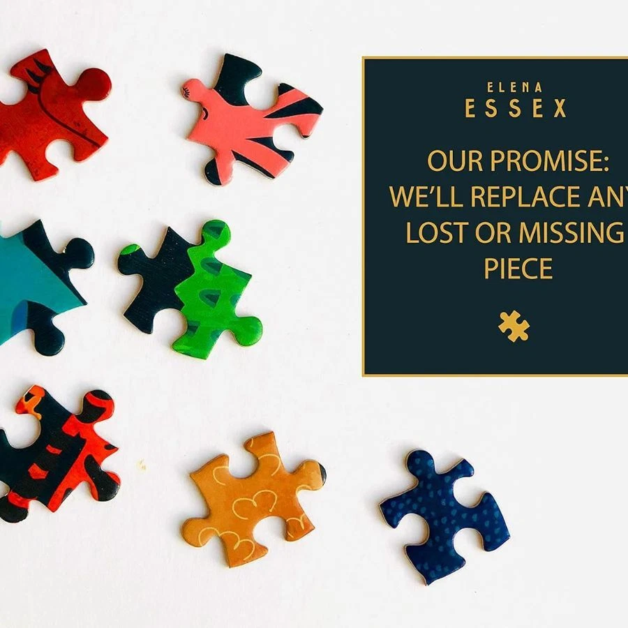 Our jigsaw puzzles are made with premium quality, non-toxic, recycled materials. We prefer a matte finish to avoid glare and do our best to ensure there's virtually no puzzle dust Each puzzle piece is precision cut and distinctly shaped to exacting standards ensuring a snug, secure and sturdy fit Women-led, Elena Essex Puzzles is a small business providing a platform for independent artists to create , long-lasting, environmentally friendly jigsaws for you to enjoy and share Along with the 1000 piece puzzle for adults, we include an A3-sized color poster to aid completion of the puzzle. The finished puzzle size is 27.5 x 19.7 inches. Recommended age: 14 years and up On Dec 25, 2024 at 19:01:35 PST, seller added the following information: