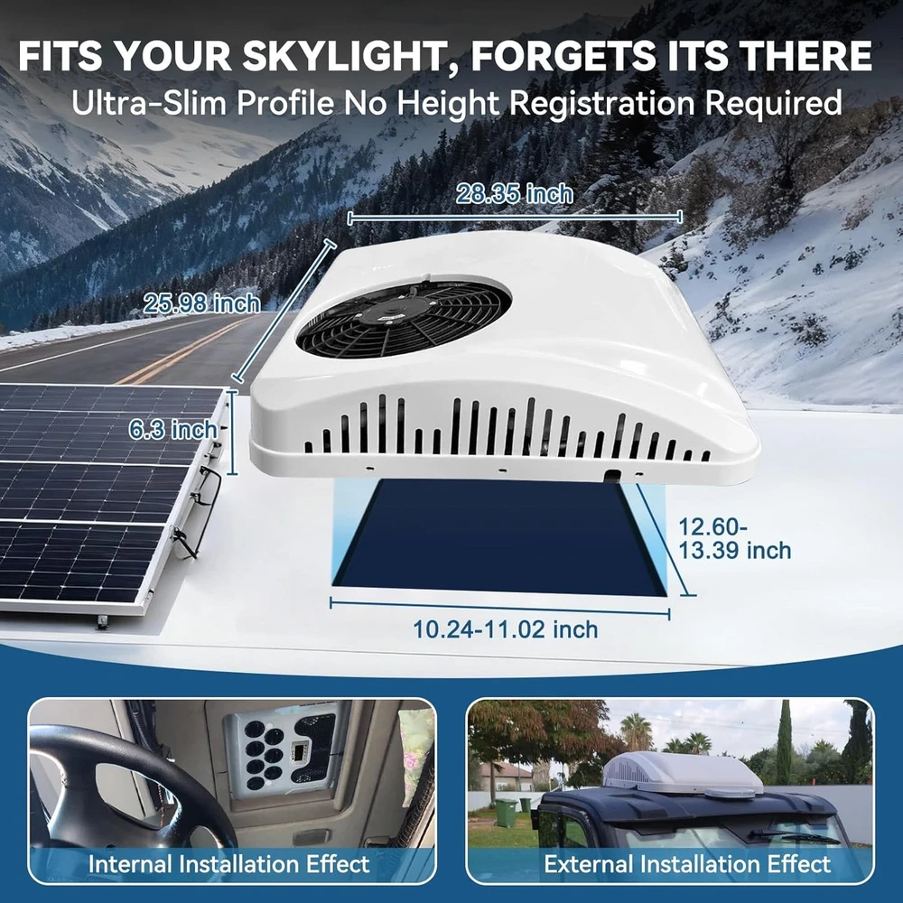 10000 BTU 12V RV Rooftop Air Conditioner A/C Unit Cooling For Trailer Motorhome Autoparts-Accs Introduction: Autoparts-Accs has been providing the quality products in automotive parts & accessories for years. Being a professional e-Bayer that provides you guys the greater shopping experiences is out mission. Product 100% Brand New Product, Quality Ensured, Provide You the Best Confident and Support! 90 Days Warranty, Money Back Guarantee, No Risk, No Hassle! Shipping Free Shipping. Handling time: 2 Business day. Item is shipped to ebay address.Leaving correct.address can minimize delay. Tracking information. will be sent once item is shipped. Contact We have a friendly and dedicated support teams to handle any problems you come up with our products. Please contact us first via email or message for replacement, refund or technical problem caused by any reason. Description: Autoparts-Accs 10000 BTU 12V RV Rooftop Air Conditioner A/C Unit Cooling For Trailer Motorhome 👀 Economic Comfort Anytime - Experience cost-effective cooling with our 12V DC air conditioner, powered by vehicle Battery/external power. Whether it's a long haul or a parked load, you can enjoy uninterrupted comfort in the cab of your truck even when the engine is off. With estimated fuel cost savings of up to 6,000 per year, it's both an enjoyable and practical investment. 👀 Quick Cooling Without The Wait - Our RV ac units quickly regulate the temperature inside your truck in as little as 9 mins during a long drive or break. Feel the refreshing cool breeze in the summer , ensuring that your RV instantly becomes an oasis from extreme weather conditions. 👀 Tranquil Retreat on the Go - Step into a serene space amidst your journey with our RV inverter air conditioner. With its innovative frequency-adjusting technology and low-noise features, whether you're navigating highways or resting at a quiet campground, enjoy a peaceful haven in the car that's less than 50 dBs. 👀 DURABLE AND EASY INSTALLATION - The outer shell of car air conditioner is meticulously crafted from high-strength ABS engineering plastics, renowned for its exceptional UV and impact resistance. This robust construction ensures that it can withstand a diverse array of harsh weather conditions, from scorching sun to severe storms, with remarkable ease and resilience. Comes with a full set of accessories and detailed instructions to realize the simplicity of air conditioning installation. Our units integrate seamlessly into your RV, giving you peace of mind and ensuring durability for long-lasting adventures. 👀 Versatility Unleashes Boundless Exploration - Explore diverse landscapes and climates effortlessly with our truck air conditioner. From rugged terrains to urban settings, whether traversing mountain passes, navigating city streets, or camping under the stars, it's your essential companion. With its wide range of applications and adaptable outdoor unit, transform your truck into a comfortable space wherever you roam.and more. 👀 Efficient Cooling Performance - This 12V Rooftop Air Conditioner delivers 10000 BTU of Cooling power , maintain ideal temperatures inside your RV, camper, or motorhome—even during scorching summers.Designed with a focus on energy efficiency, this device significantly reduces power consumption, ensuring it serves as an ideal companion for travel—all while maintaining exceptional performance 👀 Stable Performance: Compatible with 12V AC, this air conditioner adapts to most RV electrical systems, running smoothly with on-board generators or camping power supplies. It supports concurrent operation of multiple devices and ensures reliability and efficiency for both short trips and long-term RV living. 👀 Wide Range Of Uses: Indoor Unit Size: 23.62x19.69 inch; Outdoor Unit Size: 28.35x25.98x7.09.12V air conditioner is suitable for Recreational Vehicle, Motorhome, Campervan, Caravan, Camper,golf carts, excavators, engineering vehicles, big rig Features: Energy Saving: Usually, the driver runs the engine for several hours to use the air conditioner when parking or taking a rest at night, which is harmful to the environment and wastes a lot of fuel, and wears out the engine faster. The parking air conditioner is powered by truck batteries, without an engine (thus protecting the engine from wear), which saves energy and fuel. Fast Cooling: High wind speed makes it possible to quickly cool the car from a high temperature to a comfortable temperature. Low Noise: The running sound is low, providing a quiet and comfortable environment for the driver. Safety: It is driven by safe DC power supply, with multiple protections: Overvoltage protection, undervoltage protection, overload protection, overheating protection, safe and without danger. Environmental Friendly: Directly driven by battery in automotive. Low noise when working The reason to choose parking air conditioner: Normally drivers let the engine running for hours to use the air conditioner during parking or rest time at night, it is bad for the environment and waste tons of fuel. It also wears down the engine faster. Parking air conditioner works with truck battery power without engine on which can save engergy and fuel and at same time provide safe and comfortable enviornment for driver. Digital frequency conversion control, more efficient and more energy saving. Use energy saving mode when you sleep at night, it can run continuously 6 to 8 hours. Use super mode in hottest hours, cooling rapidly and stronger air supply. Please check the size of the skylight before ordering. The skylight must be larger than 320*240mm. Specifications: Condition:100% Brand New Warranty:90 Day Free return:30 Day Type: Rooftop Air Conditioner Material: Plastic Layout Structure: Top-Mounted Color: White Rated Voltage: DC 12V (cooling type) Rated Cooling Capacity: 10000 BTU Air Volume: 450 m³/h Rated Power: 960W Undervoltage Protection: 9-11.2V Coefficient of Performance: ≥2.5 Refrigera