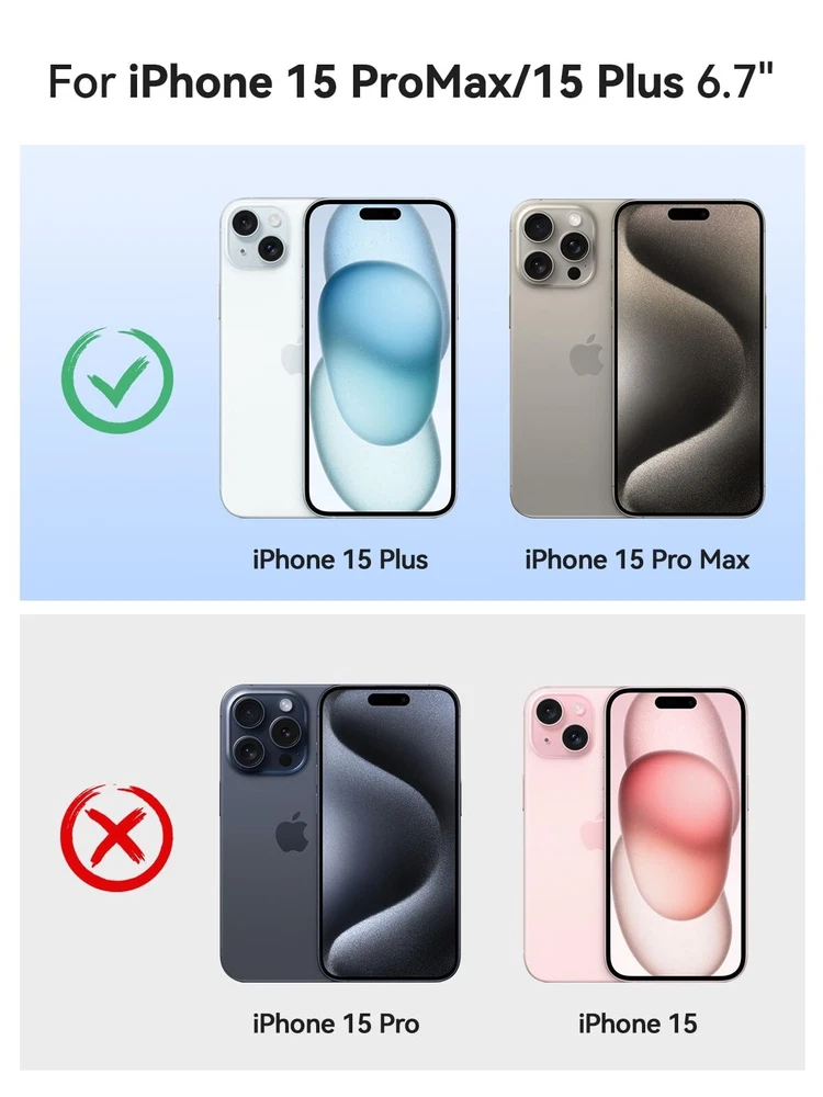 【Compatible Devices】The battery case only fits for iPhone 15 Pro Max, iPhone 15 Plus. Doesn't fit for iPhone 15, iPhone 15 Pro, iPhone 14 Plus, iPhone 14 Pro Max, iPhone 13 Pro Max and other iPhone brand phone. Please check your phone model before buying. The charger case built-in TYPE C port. 【10000mAh High Capacity】The iPhone 15 plus charging case built-in 10000mAh Lithium-ion battery, powerfully extended 200% battery life to your phone, make your phone alive a whole day. It has passed CE, FC and RoHS certification and can be taken on board the plane. Perfect for daily heavy user, business trip or travel 【Magnetic & Qi Wireless & Wired Charging】 The extended battery pack with built-in magnetic module, can be charged with a wireless charger or mag safe charger for a quick and convenient wireless charging experience. Simultaneously charge your iPhone 15 pro max and the charger case via USB C cable. Your phone will be fully charged first then the charging case. 【Easy to Use&Convenient】The iPhone 15 Pro Max charging case makes installation and carry much easier and safer. Equipped with power level indicator LED lights, just press the button for 3 seconds to start or stop charging. 4 LED battery level indicators that let you know how much power you have (0--25%--50%--75%--100%). Product Specifications 1. Input: 5V/1.5A 2. Output: 5V/1.0A 3. Dimensions: 6.5"*3.28"*0.93" 4. Weight: 7.05oz 5. Charging Port: USB C What You Get 1*iPhone 15 Pro Max Battery Case 1*User Manual Important Note: 1. Support Qi wireless charging, magnetic wireless charging, Apple pay. 2. Access to music or calling with Bluetooth earphone while charging your iPhone 15 Pro Max/iPhone 15 Plus.