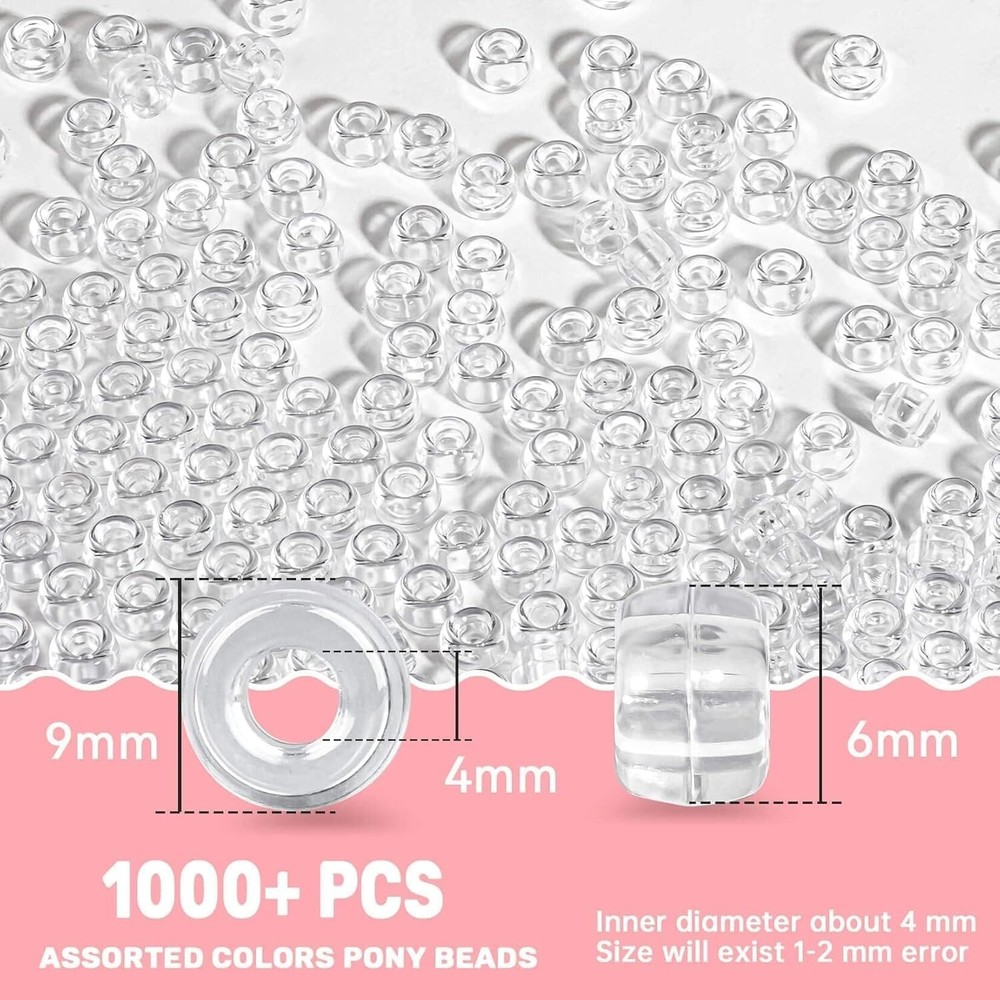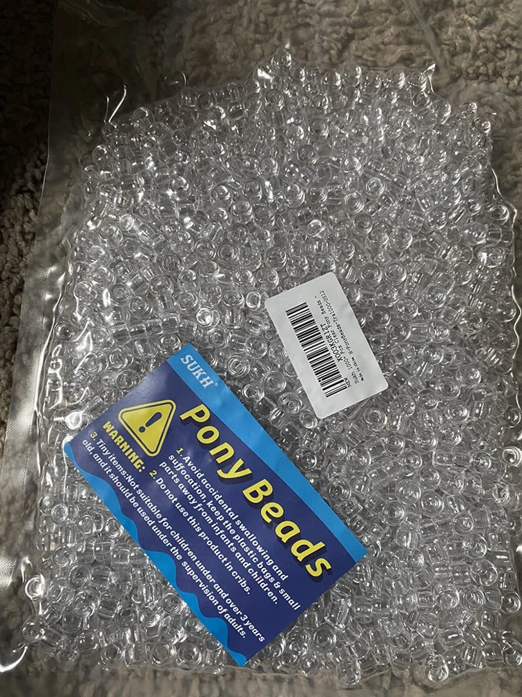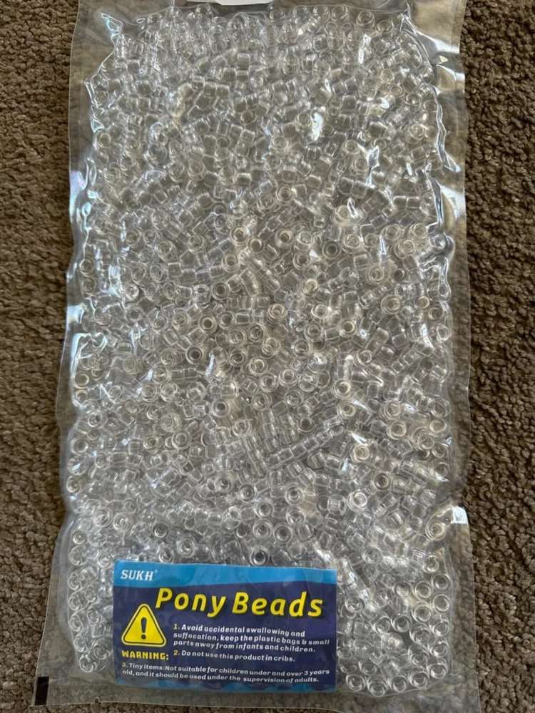 1000+ Pcs Pony Beads Bulk Plastic Bracelet Beads 6X9Mm Crystal White Clear Pony Color: Tra-white Pony Beads Material: Wool, Acrylic Size: Small Shape: Round Item Weight: 0.25 Kilograms Number of Pieces: 1000 High Quality Smooth: The pony beads are made of high-quality acrylic plastic. Our pony beads bulk smooth surface and won't hurt your hands, waterproof and sturdy,not easy to fade, consistent color, Bright and shiny and light weight . The hair beads size is 6x9 mm with 4 mm hole in the center, making them easy to use Great Assorted Colors: Our pony beads bulk include 1000 pcs classic color pony beads, 6x9mm pony beads multiple color options will create more possibilities for your beading or DIY projects Widely Application: The craft beads suitable for DIY craft projects, not only can be make beautiful necklaces and bracelets, but also can be make cute cartoon or animal figures. The pony beads for bracelets making, perfect for hair braids,key chains, anklets and many other ornaments Fun DIY and Learning Tools: The beads can be widely used in classrooms, homes, camp activities, great craft product for all ages, can be allow the children to learn color sorting, counting and weighing; can be also string them on pipe ware, wool and elastic string to make DIY crafts Return Policy: We offer a 30 day return policy from the receiving date. Please contact us for a Free Return Label. Please use our return label so it will go back to our supplier and we can do a refund or replacement afterwards. Feedback: Your satisfaction is very important to us! If you have any problem with your order, please contact us and we will do our very best to make you satisfied. As long as you are happy with your purchase, please leave a positive feedback for us. We will always leave you a positive feedback in return. If you have any problem with your purchase, please do not leave a negative feedback. Please Contact us ... and your issue will be solved quickly and positively We are a small family-owned business trying to make a living, not a huge company that does not care ... We will ALWAYS do our best for you!