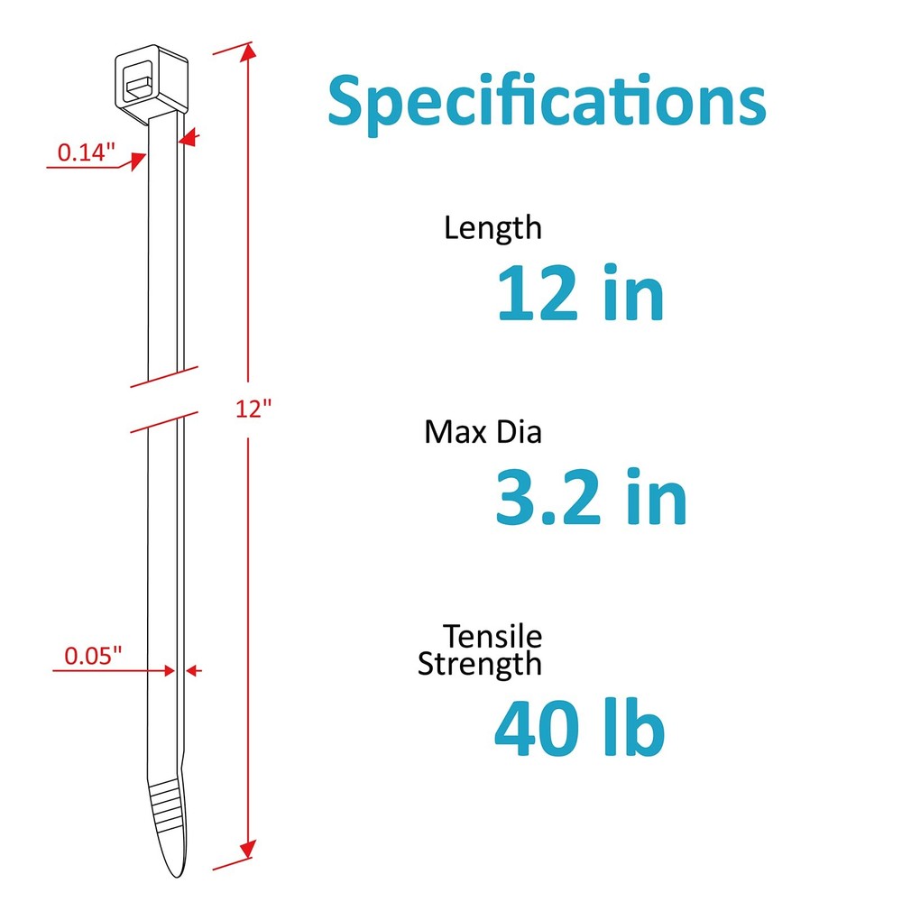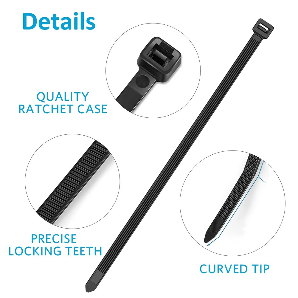 Black Zip Ties 12 inch 1000 Pack Co.,Ltd is a professional manufacturer of nylon cable ties. We will continue to improve the product quality, provide top grade products and the best service for our customers. Make the best use of your purchase! With 1000 zip ties, you don't have to worry about running out in the middle of your project. High Quality black zip ties are made of UV resistant halogen free nylon 66. Operation temperature is -40℉to 185℉with UL94V-2 flammability. Higher Tensile Strength zip ties’width is 0.14 inch, 40lb tensile strength. You can use our wire ties with confidence without worrying they will break. Self-locking Design zip ties can be easily locked in, tightly and securely. One-piece construction for consistent performance and reliability. Multi-purpose Applications plastic ties can be used to tie cords and cables for electronics. 12 inch zip ties can be used to organize electrical wires and PC or laptop cords. You can use them to repair garden fences, hang LED lights, etc. Warranty: Tips: 1. Please keep out reach of children. 2. Please use scissor when remove the tip of zip tie. 3. Please use zipties in proper tensile strength. Package Includes: 12 inch Zip Ties Black 1000 Pack. 1000 pack: With 1000 zip ties, you don't have to worry about running out of in the middle of your project 40lb Tensile Strength: The width of our zip ties is 0.14", provide 40 lb tensile strength UV/Frost Resistant: Our cable ties can be used in temperature from -40℉ to 185℉, so in snow and direct sunlight is no problem Indoor or Outdoor: With various applications for home, shed, garden, garage, organizing electrical wire ties Long Warranty: Customer will receive a 100% refund if any quality issue under warranty period.